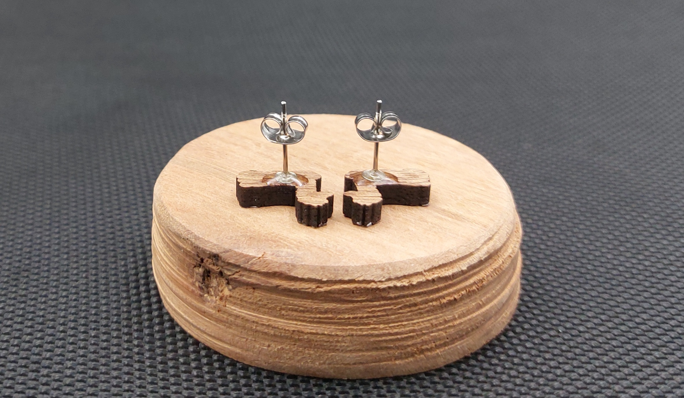 Moje kolczyki są wykonane z drewna egzotycznego, wycinane laserowo.