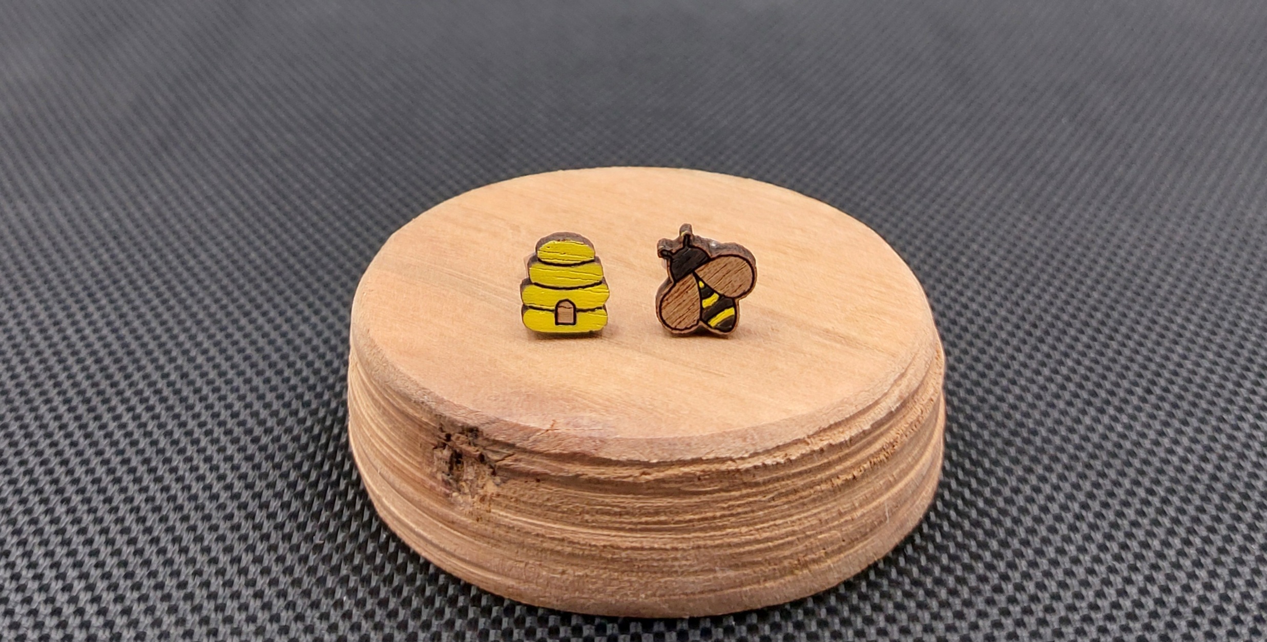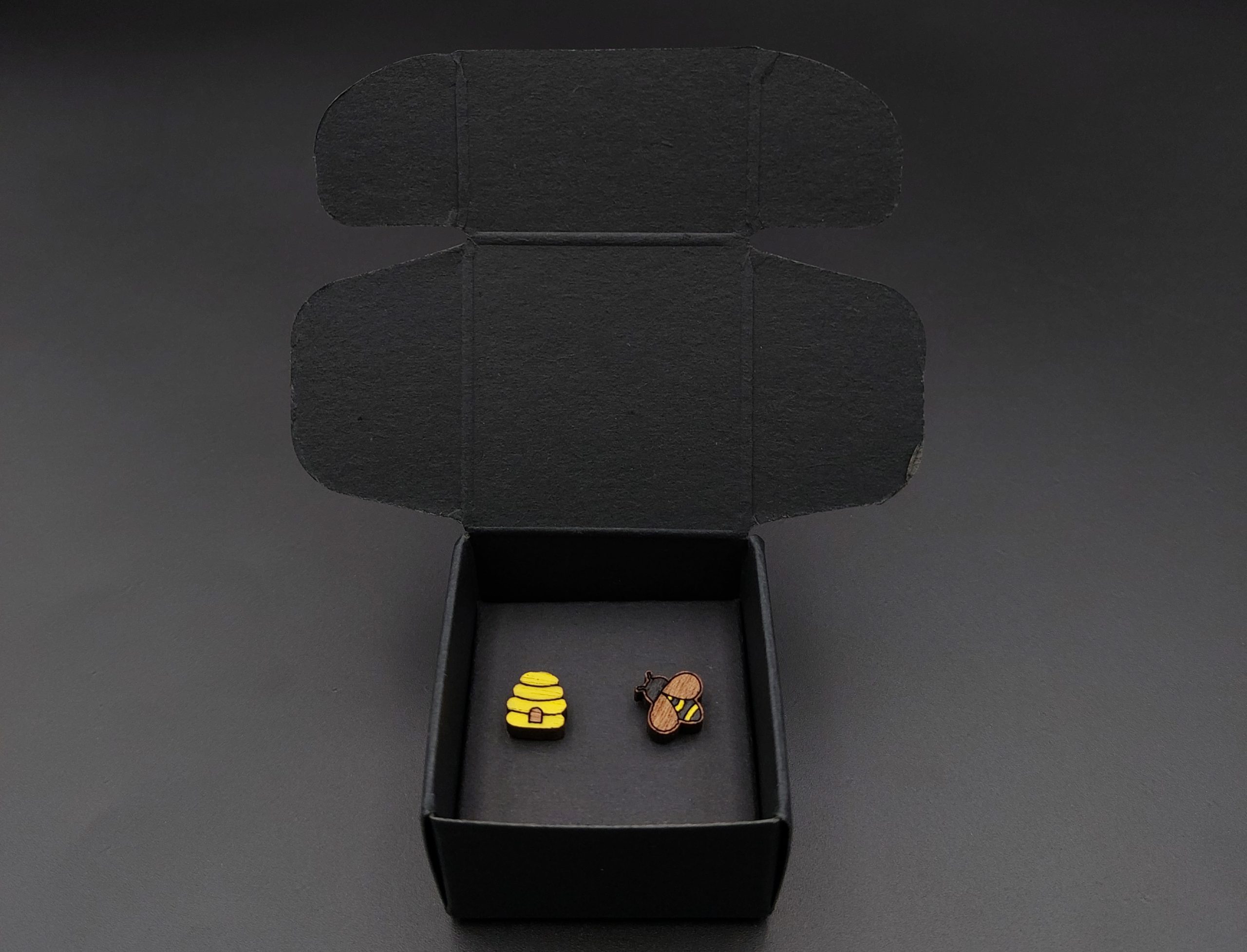 Kolczyki drewniane asymetryczne PSZCZOŁA I UL