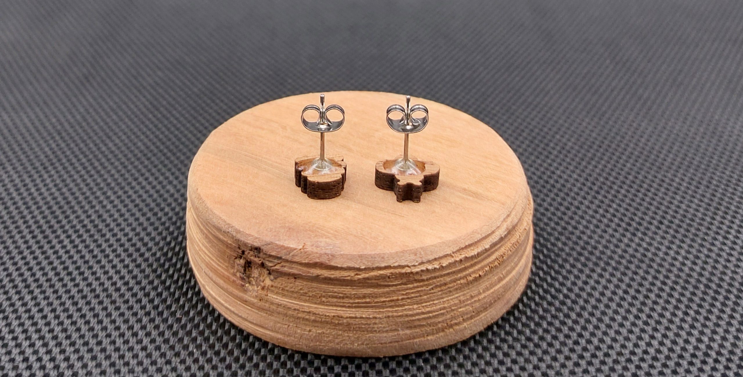 Moje kolczyki są wykonane z drewna egzotycznego, wycinane laserowo.
