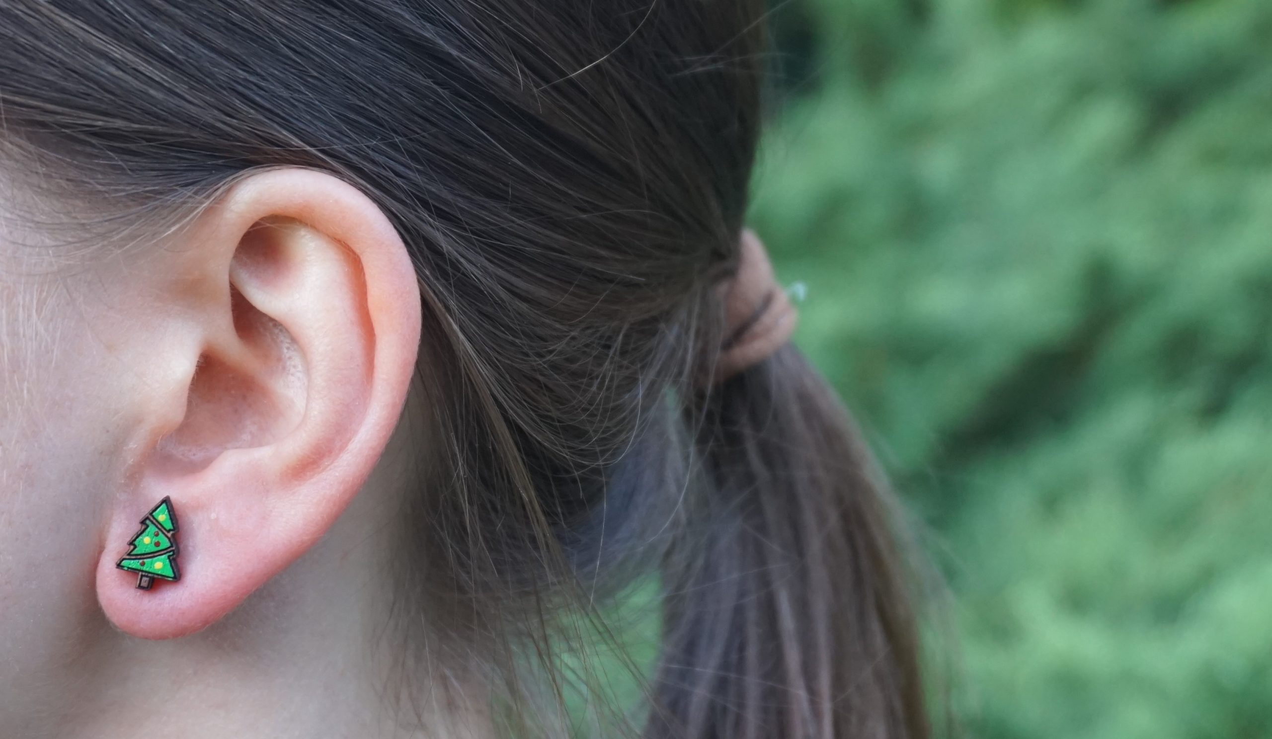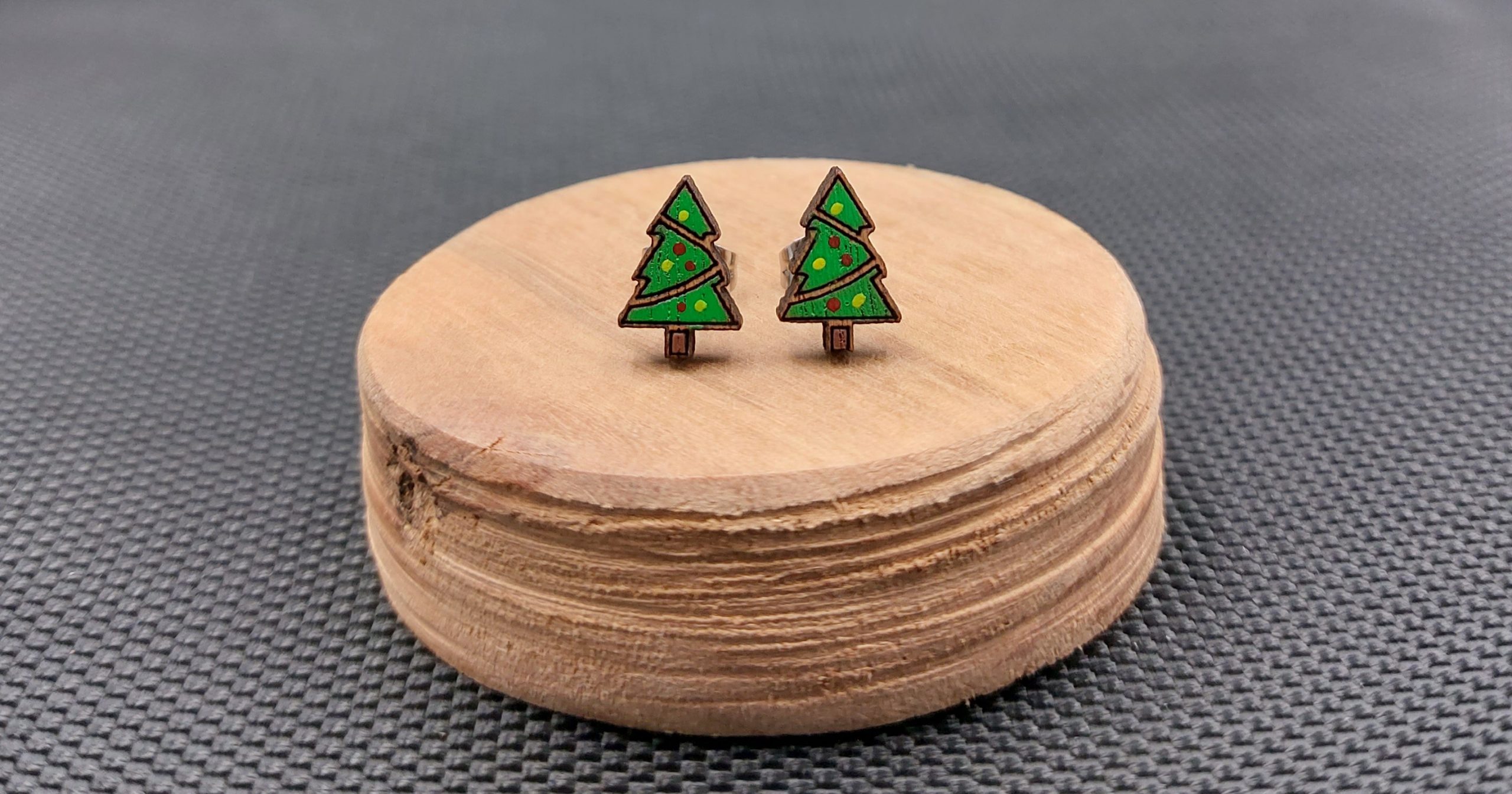 Kolczyki drewniane CHOINKI Z BOMBKAMI