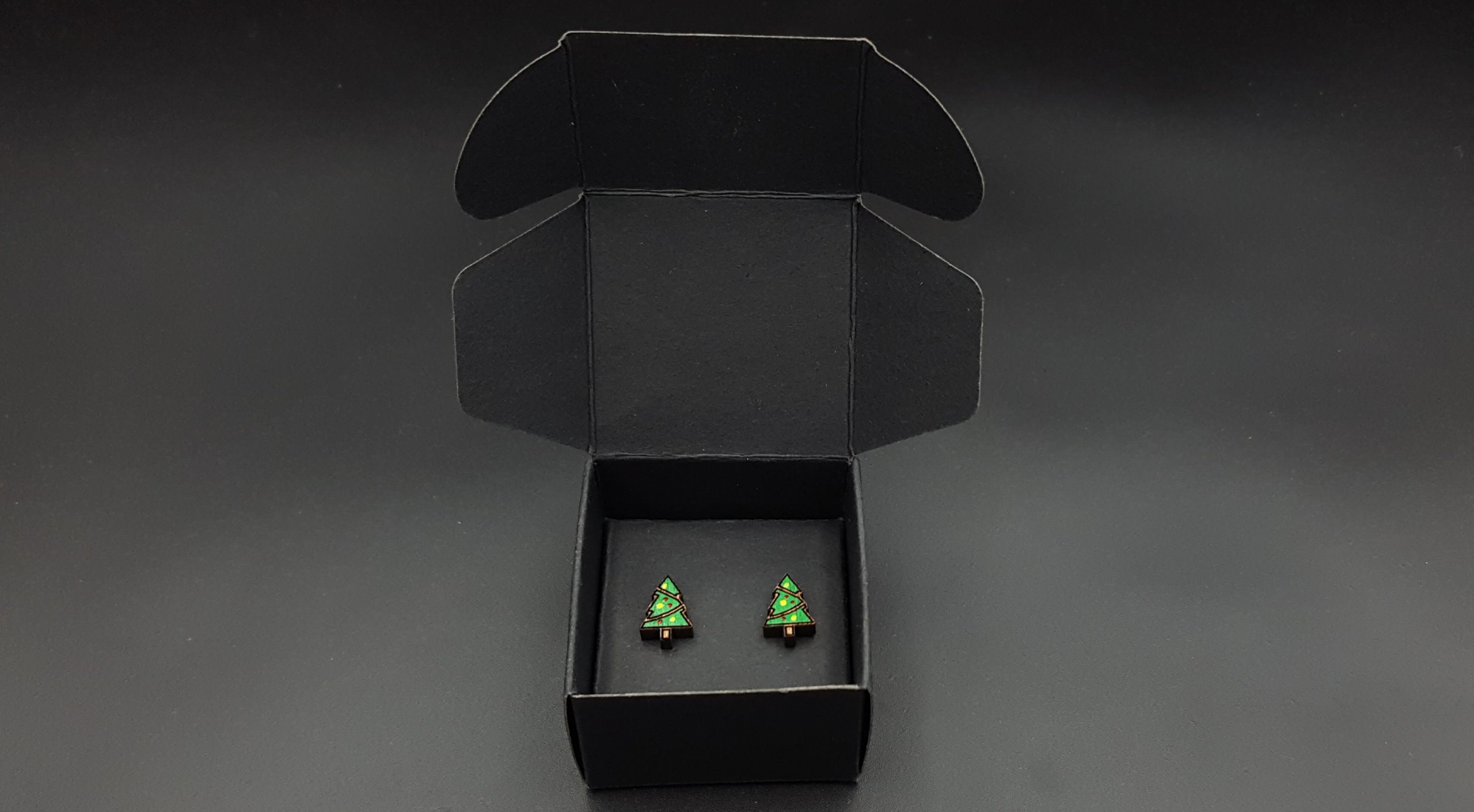 Kolczyki pakuję w kartonowe pudełeczko widoczne na zdjęciu.