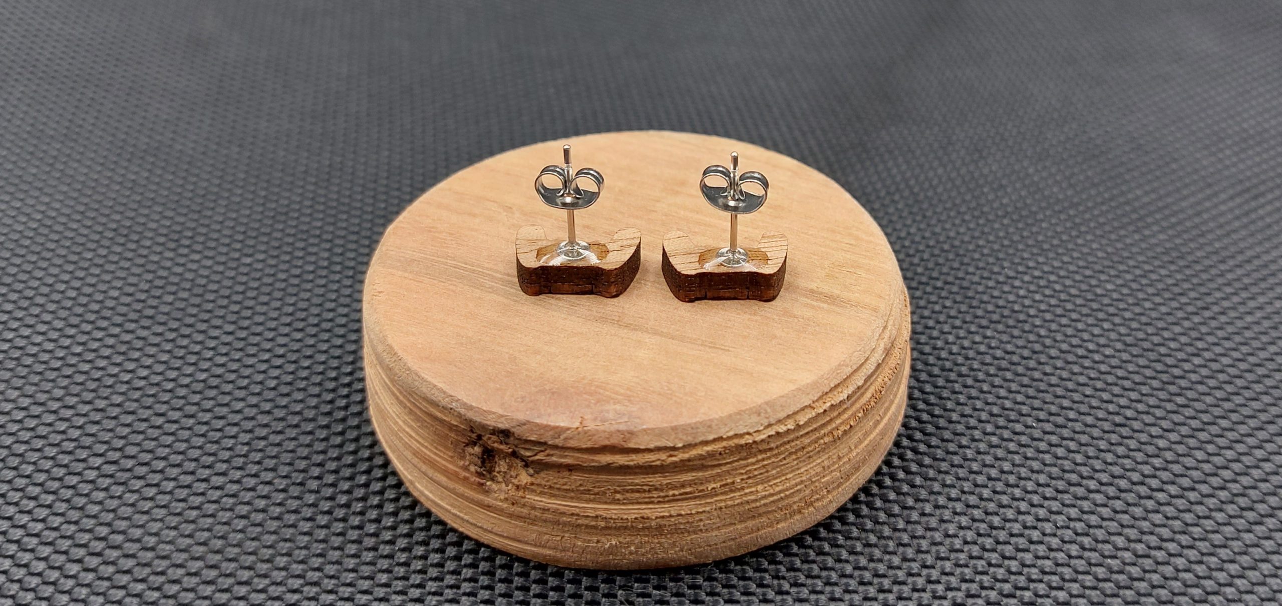 Moje kolczyki są wykonane z drewna egzotycznego, wycinane laserowo.