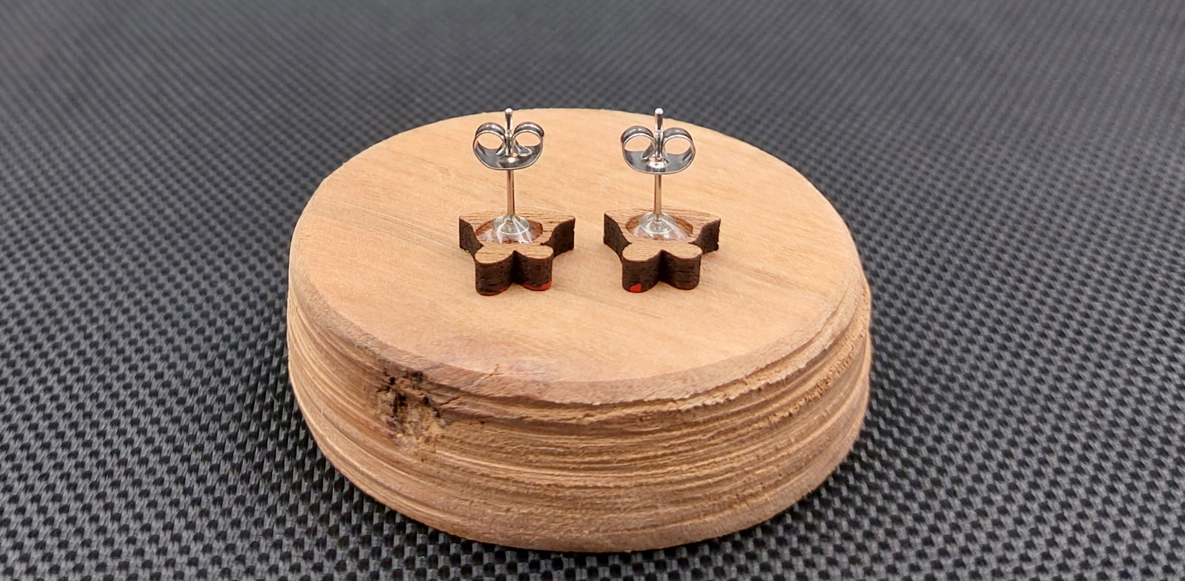 Moje kolczyki są wykonane z drewna egzotycznego, wycinane laserowo.