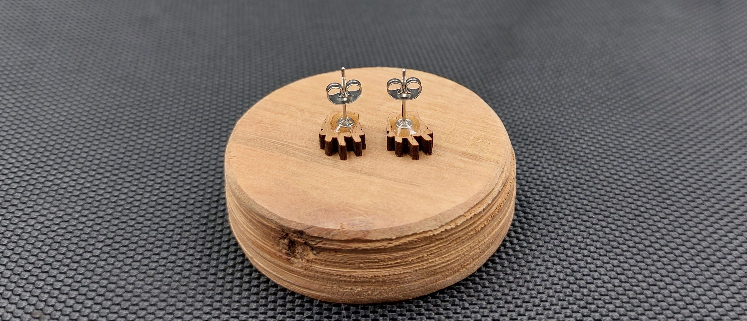 Moje kolczyki są wykonane z drewna egzotycznego, wycinane laserowo.