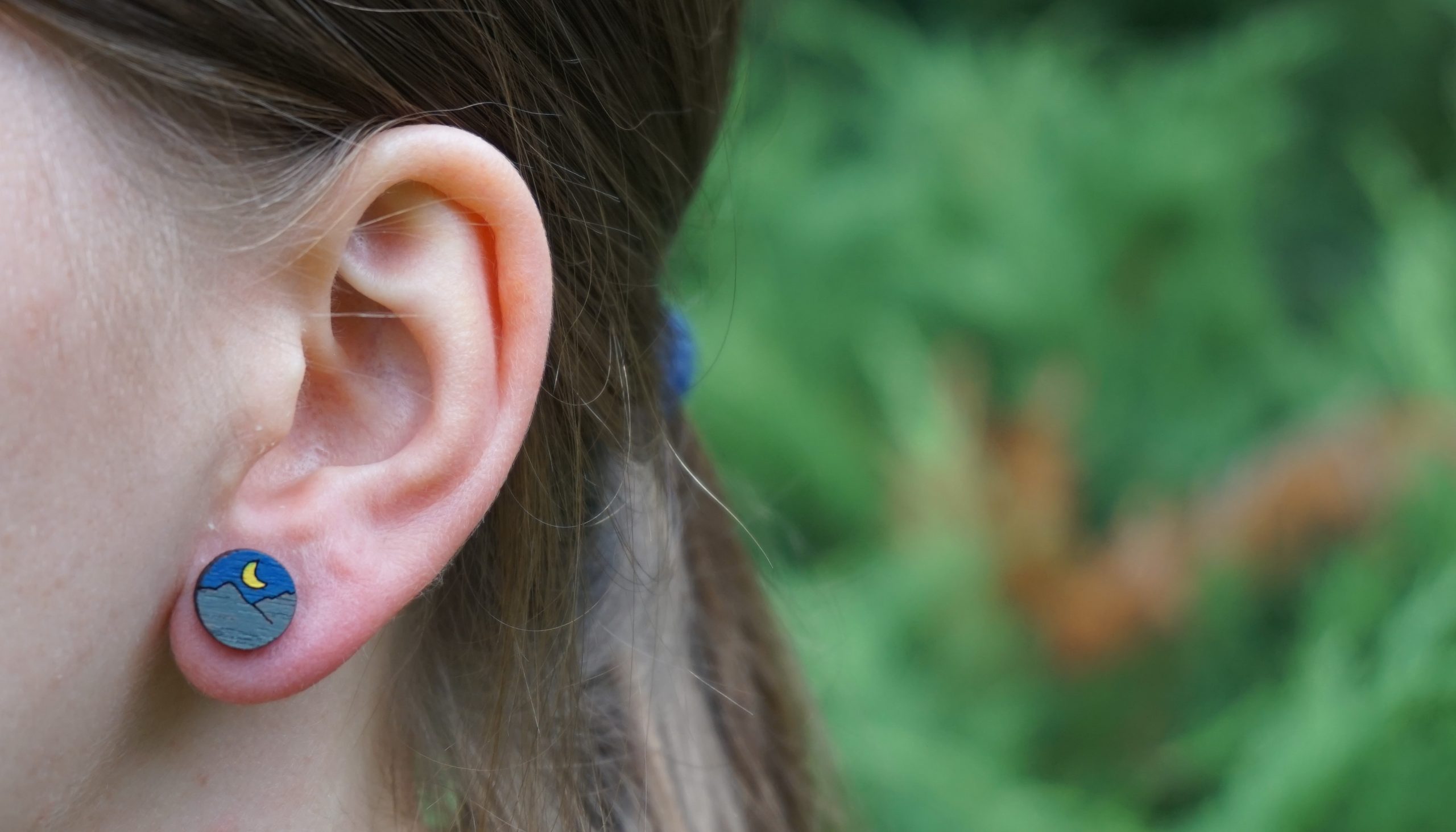 Każda para kolczyków powstaje z innego kawałka drewna oraz jest ręcznie malowana przeze mnie, dlatego występują minimalne różnice w ich wyglądzie. Nie ma dwóch identycznych par. Dodatkowo kolory widoczne na zdjęciach mogą się nieco różnić od rzeczywistych ze względu na parametry ustawień monitora.