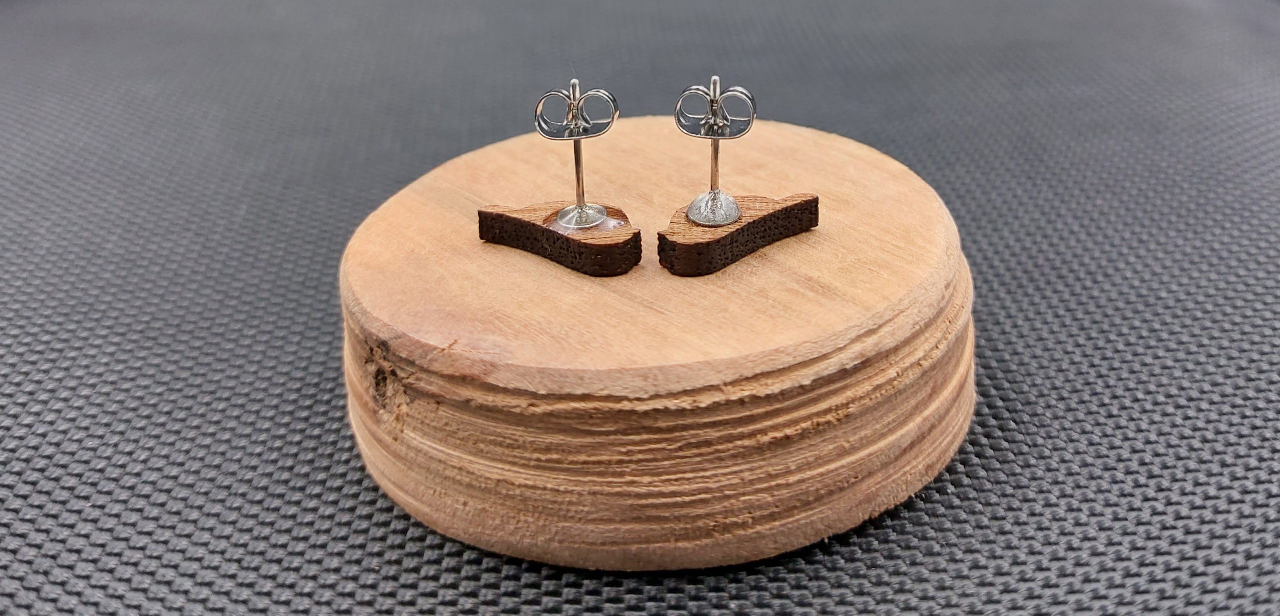 Moje kolczyki są wykonane z drewna egzotycznego, wycinane laserowo.