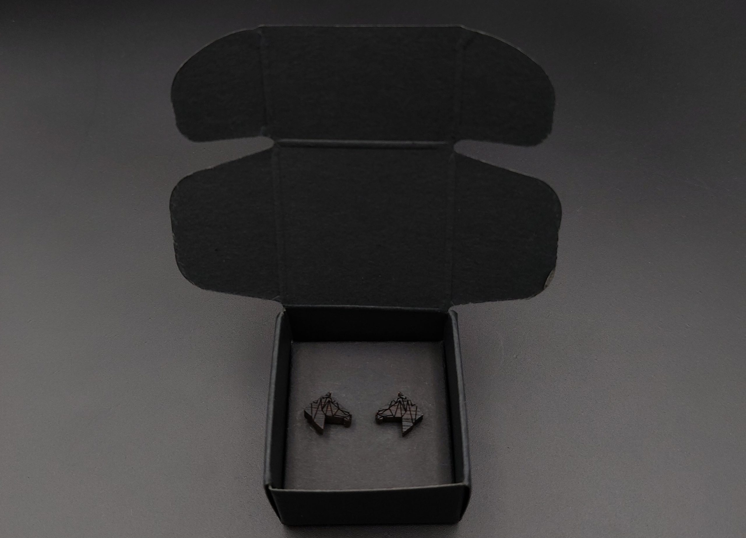 Kolczyki pakuję w kartonowe pudełeczko widoczne na zdjęciu.