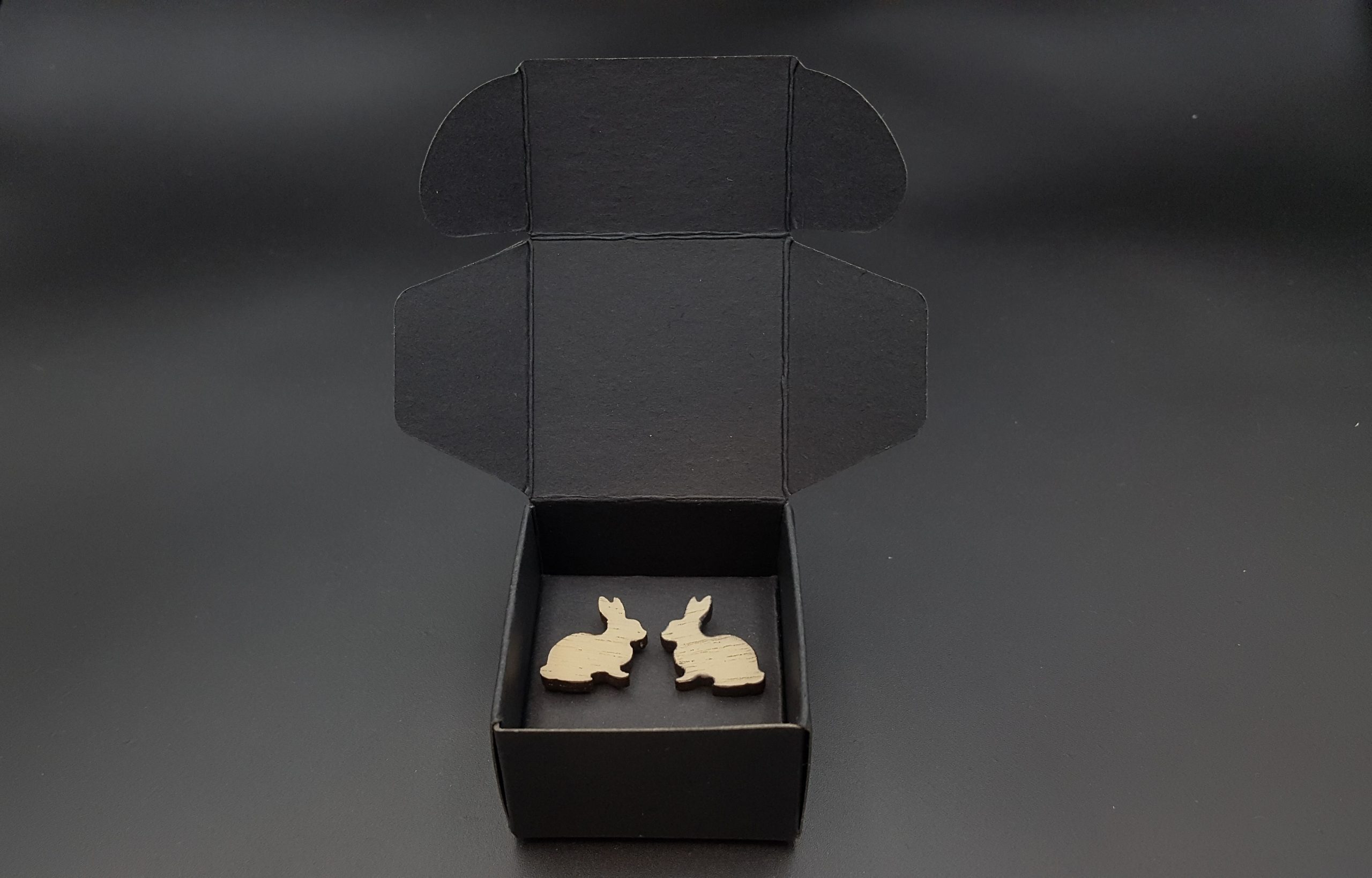 Kolczyki pakuję w kartonowe pudełeczko widoczne na zdjęciu.