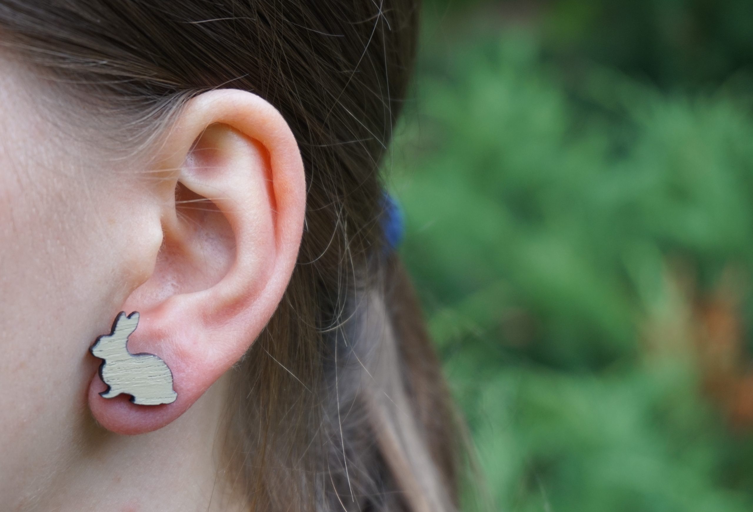 Kolczyki w kształcie sylwetki królika.