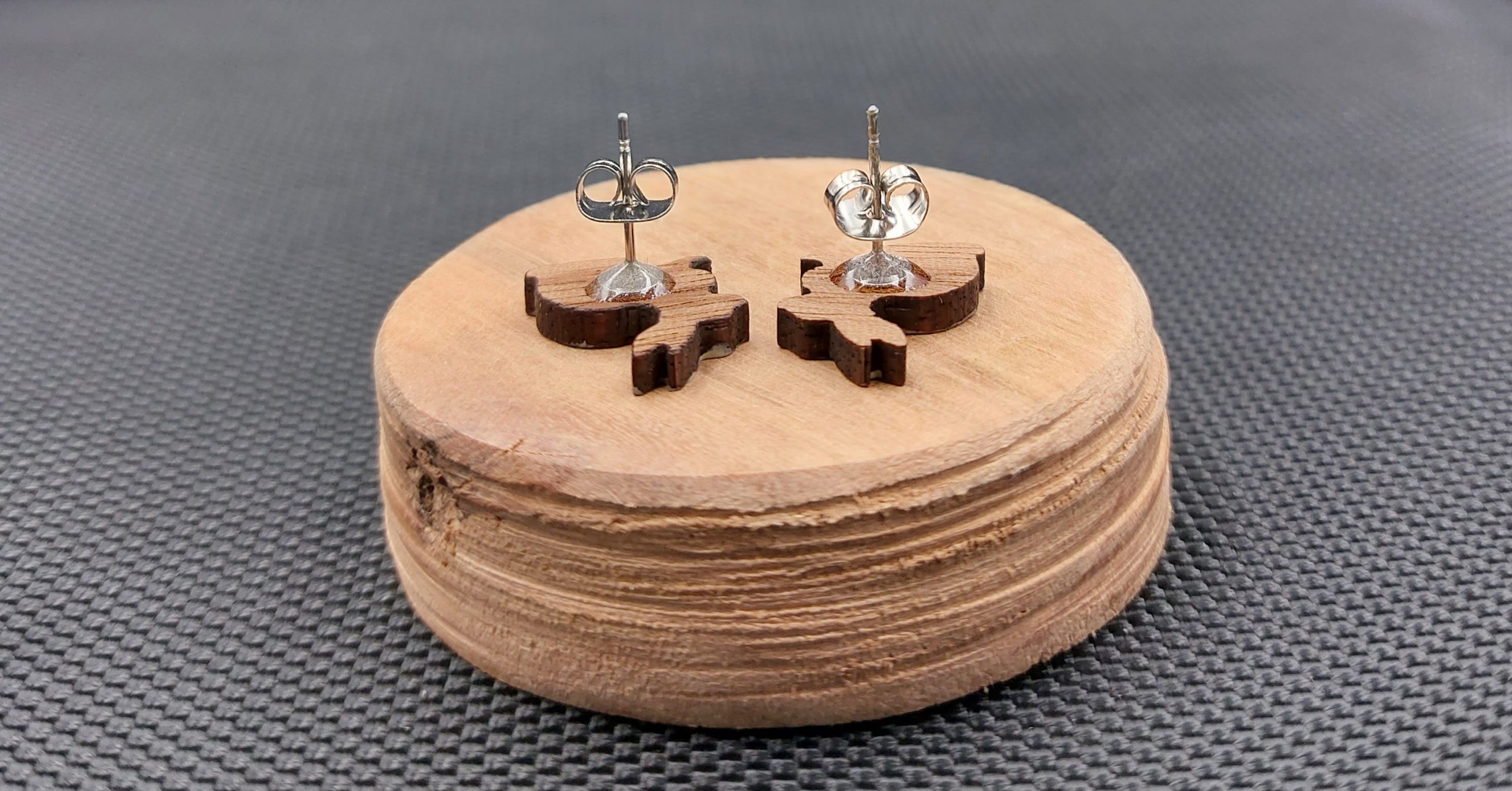 Moje kolczyki są wykonane z drewna egzotycznego, wycinane laserowo.