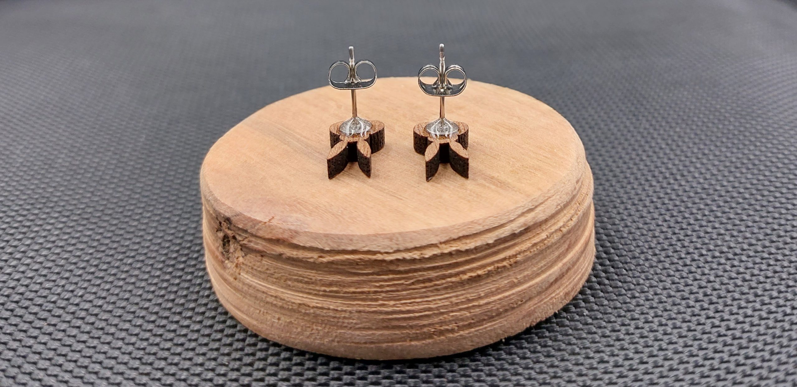 Moje kolczyki są wykonane z drewna egzotycznego, wycinane laserowo.