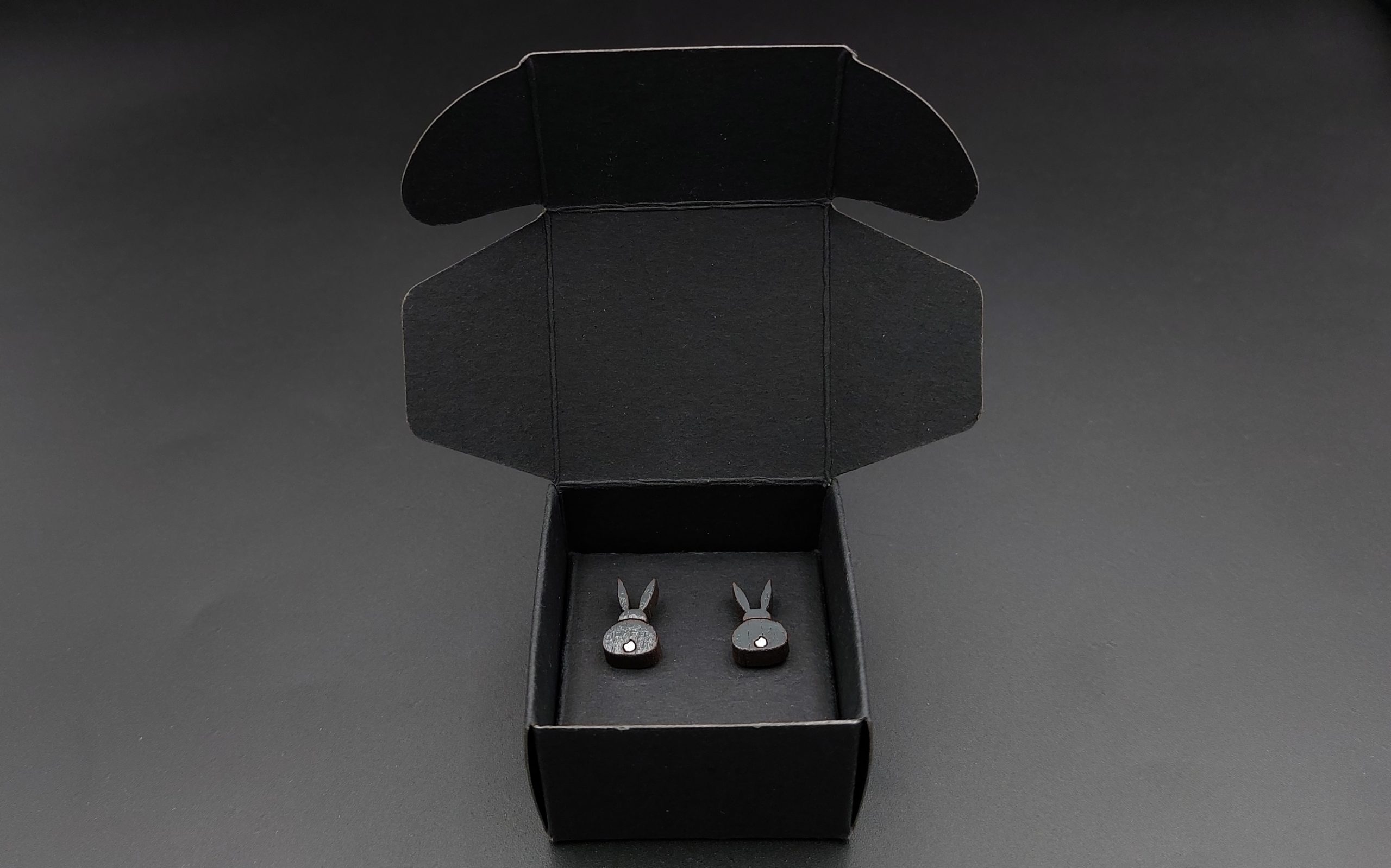 Kolczyki pakuję w kartonowe pudełeczko widoczne na zdjęciu.