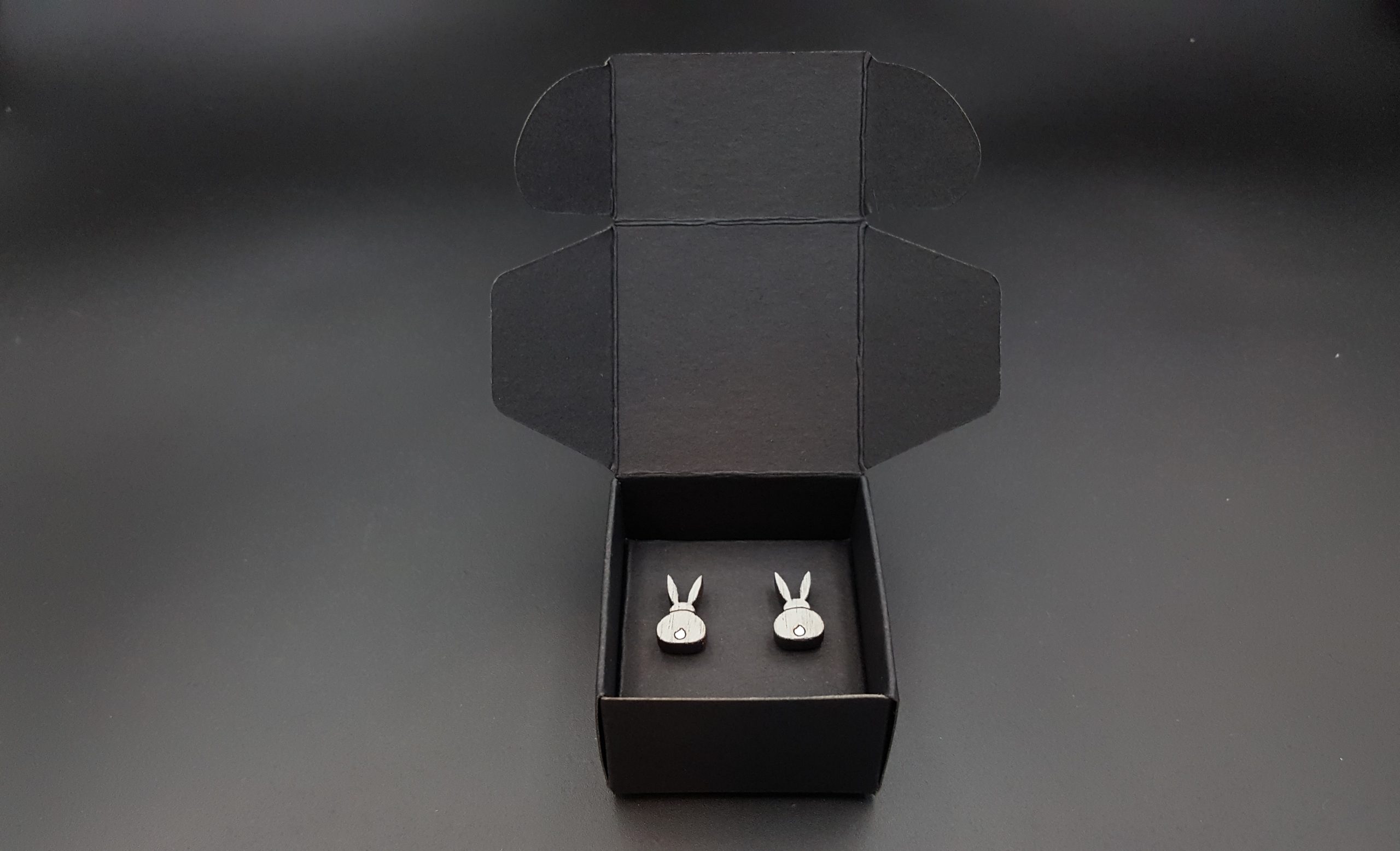 Kolczyki pakuję w kartonowe pudełeczko widoczne na zdjęciu.