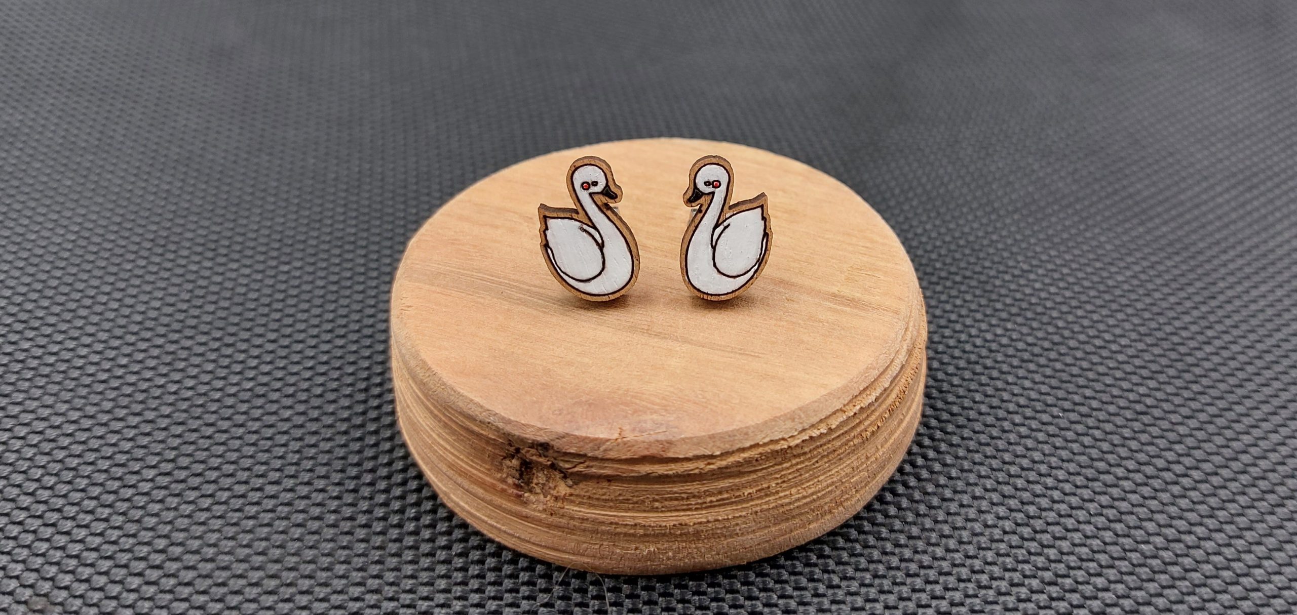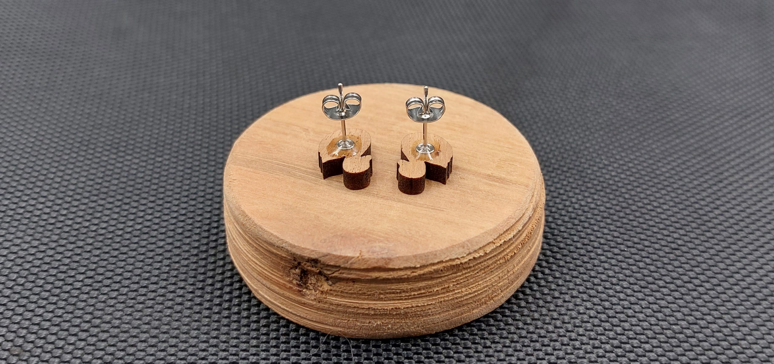 Moje kolczyki są wykonane z drewna egzotycznego, wycinane laserowo.