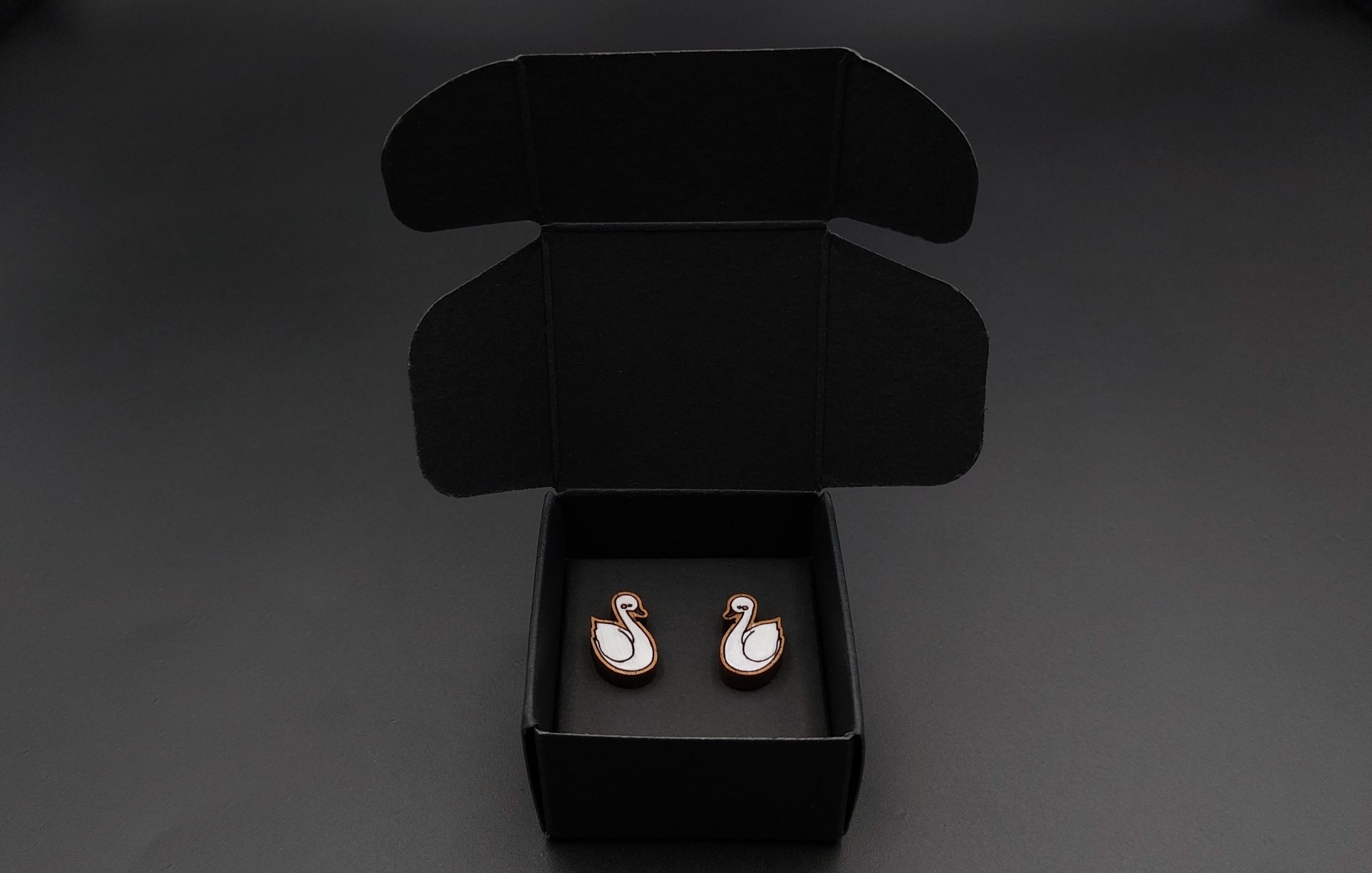 Kolczyki pakuję w kartonowe pudełeczko widoczne na zdjęciu.