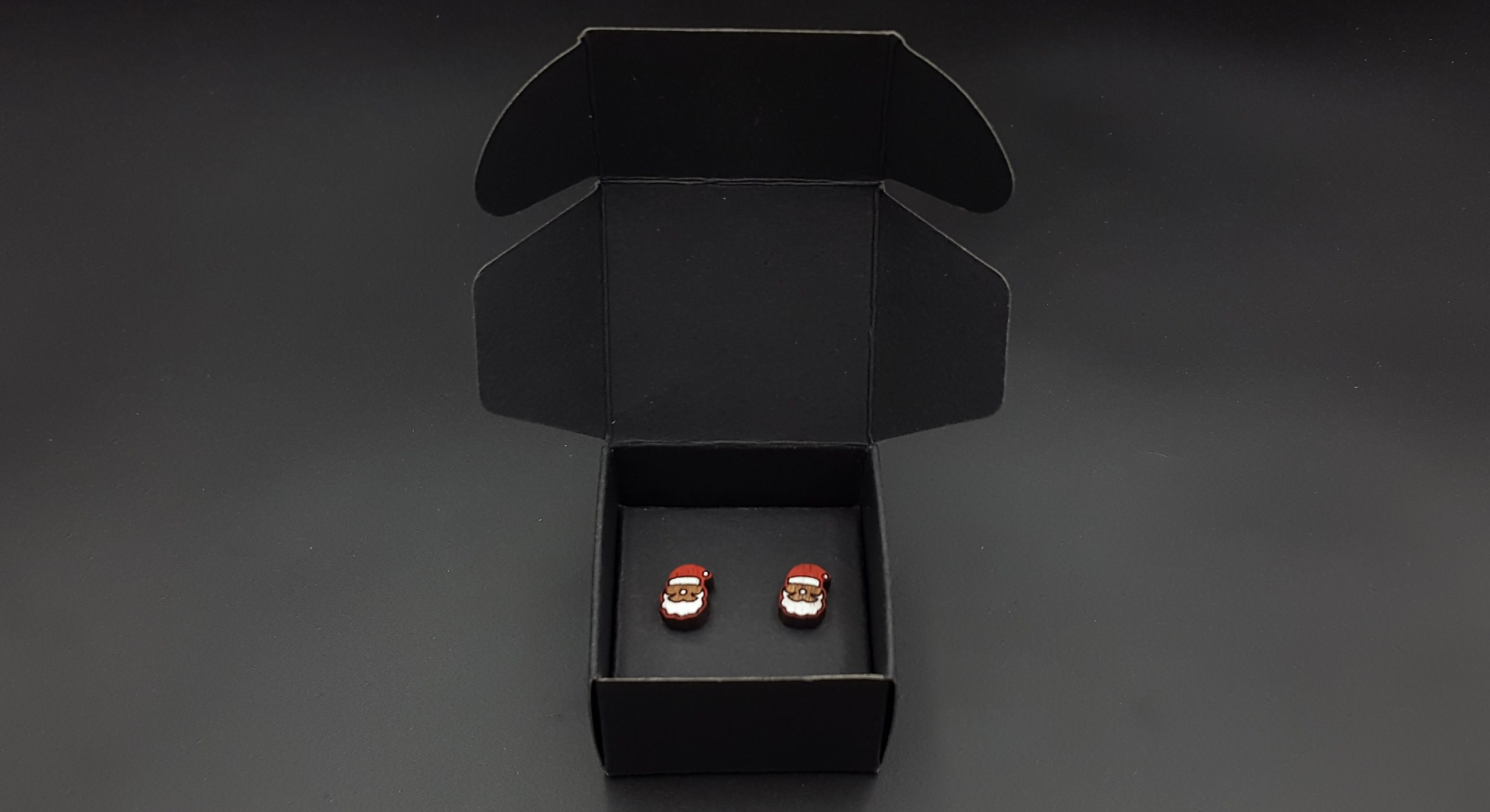 Kolczyki pakuję w kartonowe pudełeczko widoczne na zdjęciu.