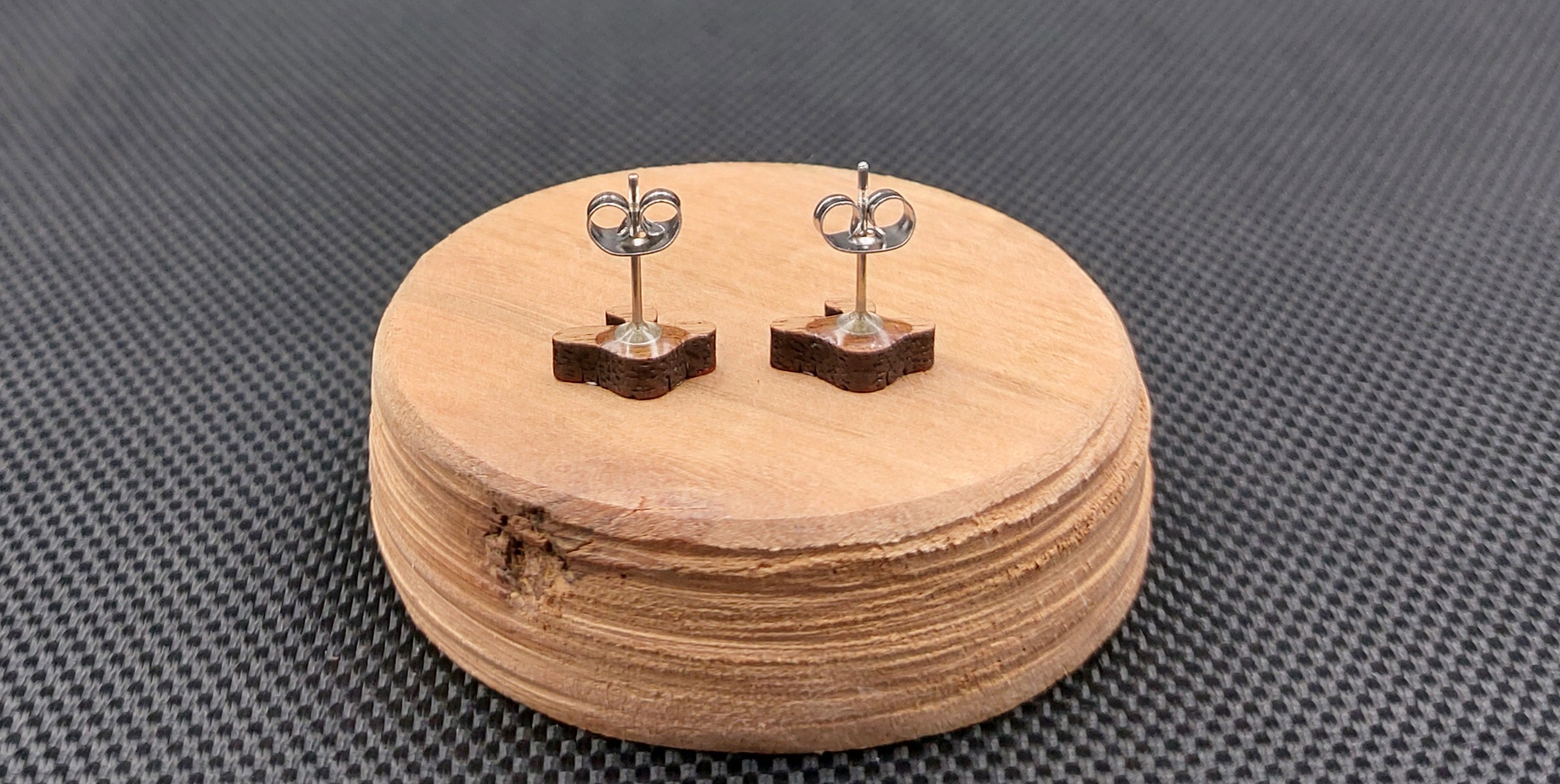 Moje kolczyki są wykonane z drewna egzotycznego, wycinane laserowo.