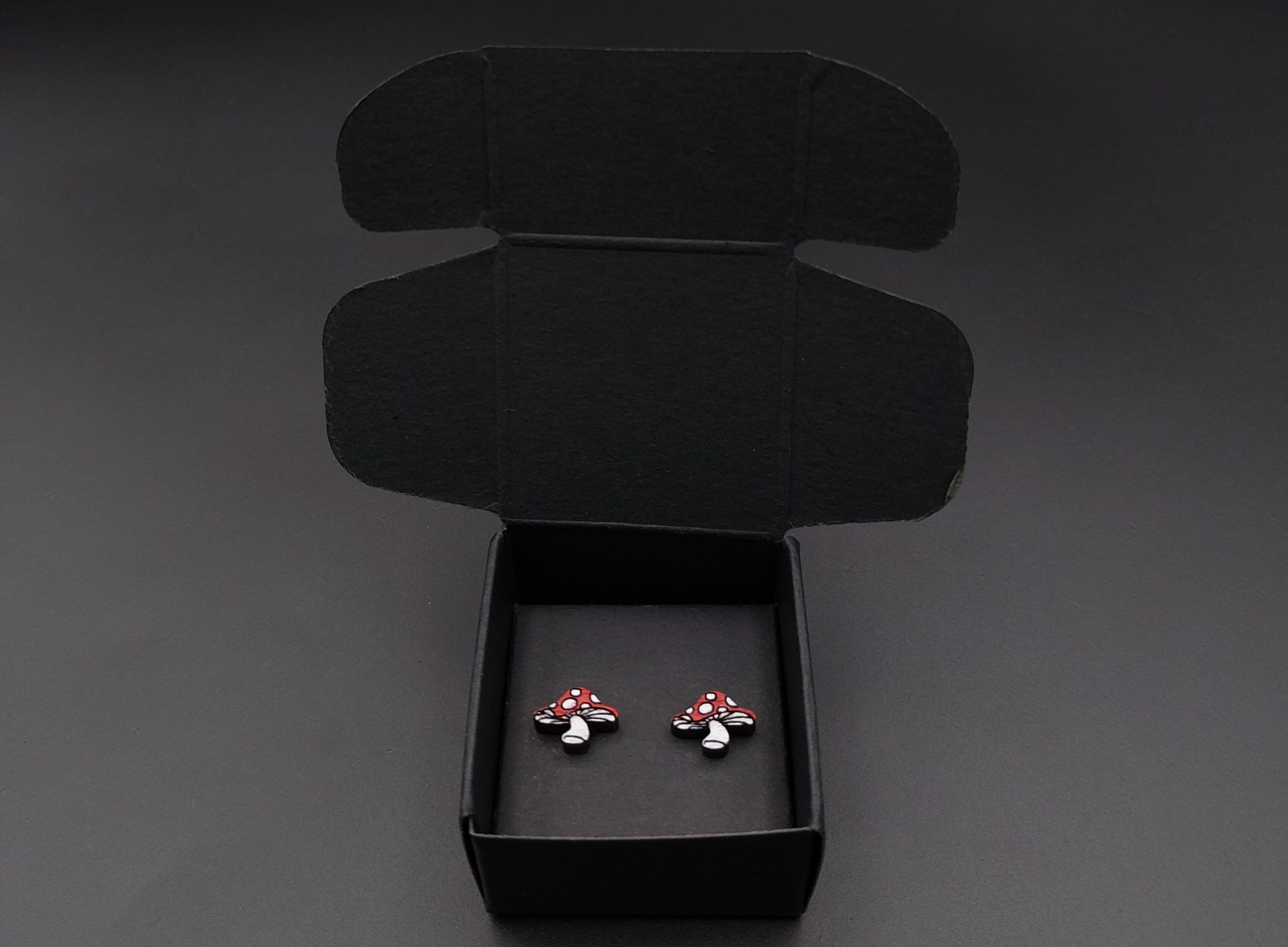 Kolczyki pakuję w kartonowe pudełeczko widoczne na zdjęciu.