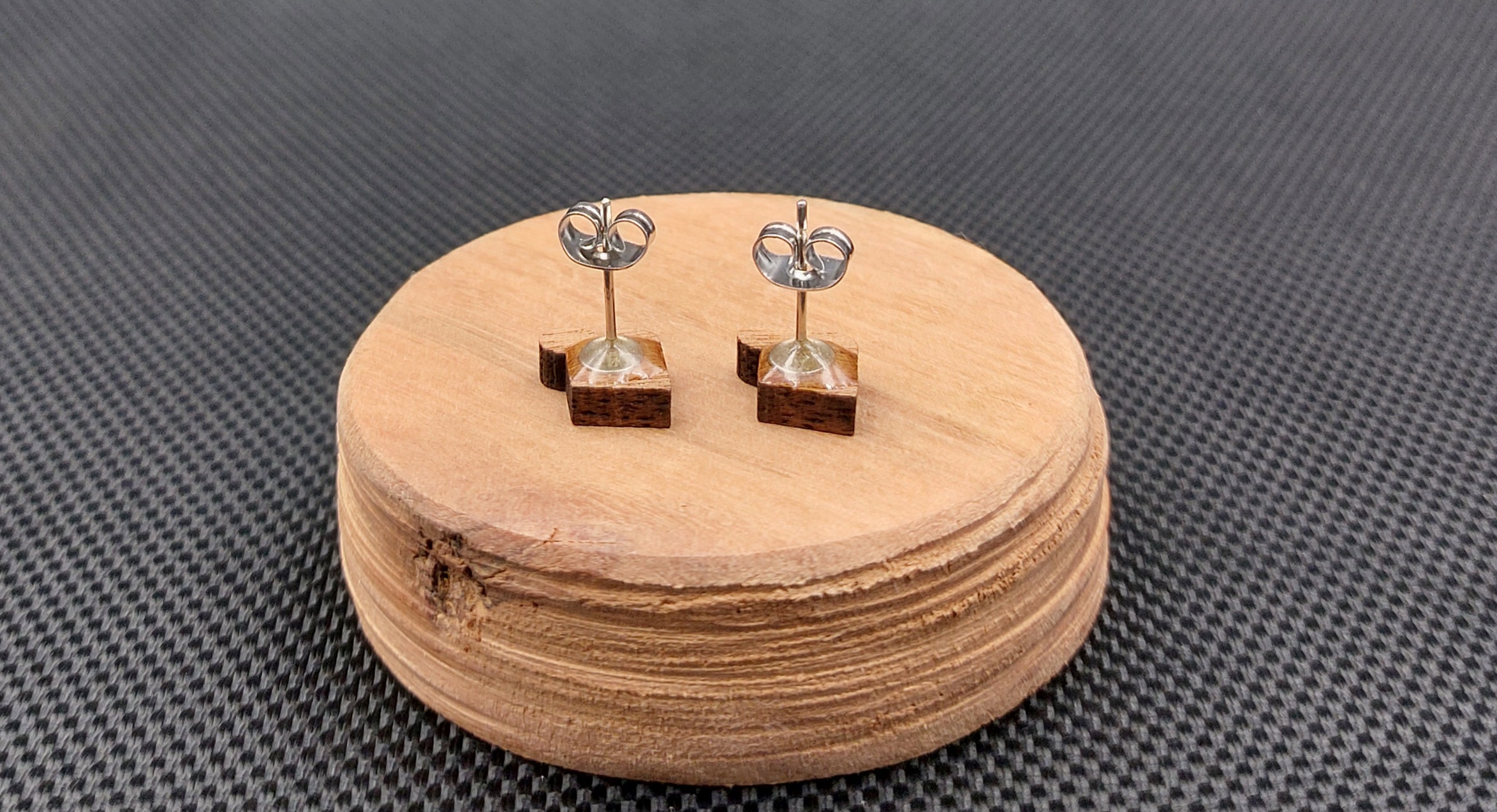 Moje kolczyki są wykonane z drewna egzotycznego, wycinane laserowo.