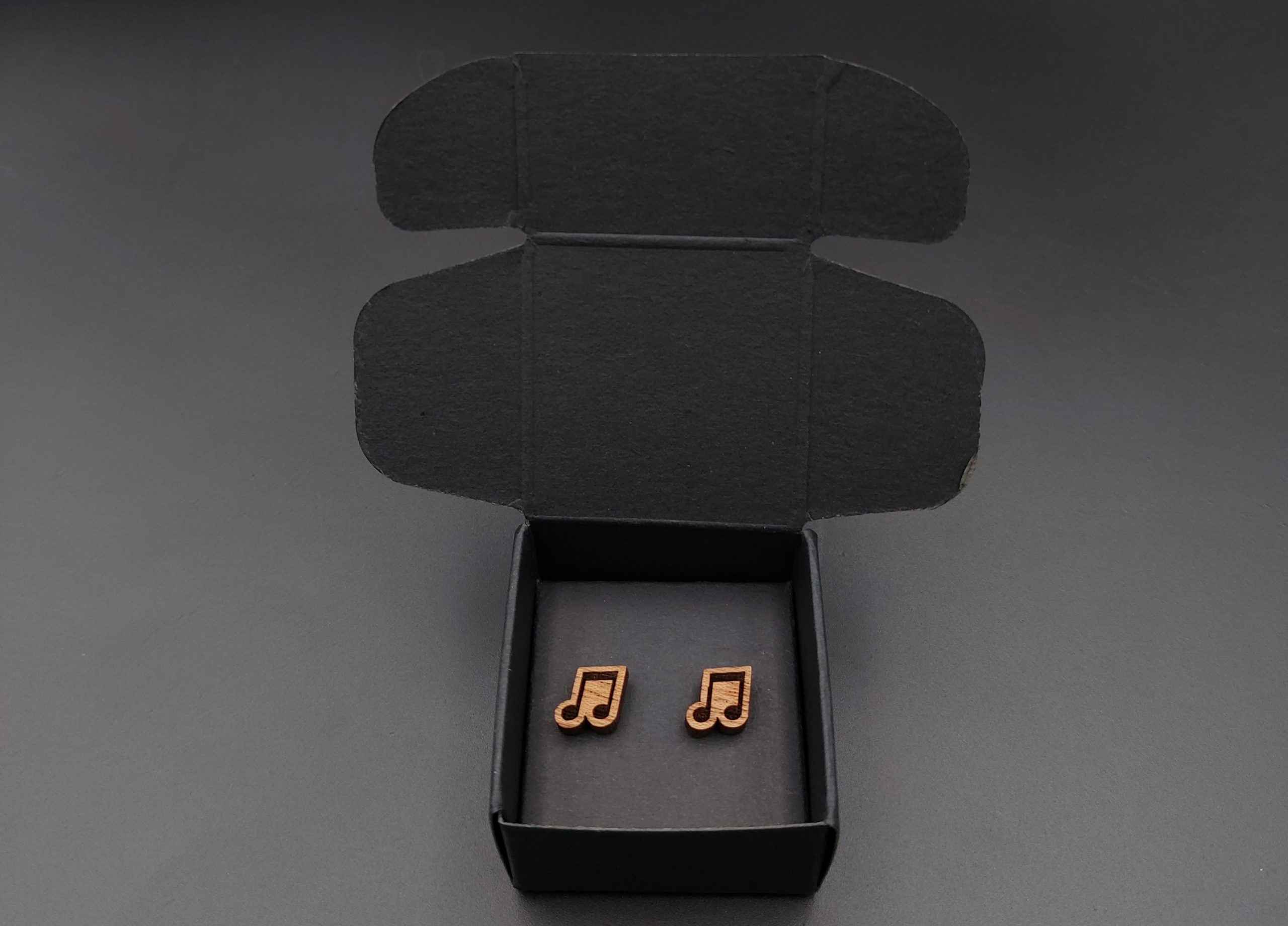 Kolczyki pakuję w kartonowe pudełeczko widoczne na zdjęciu.