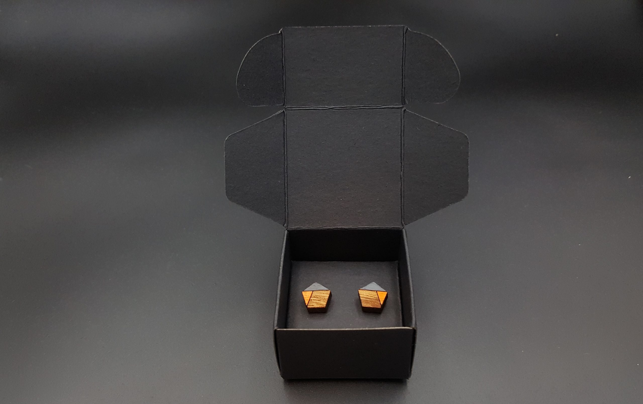Kolczyki pakuję w kartonowe pudełeczko widoczne na zdjęciu.