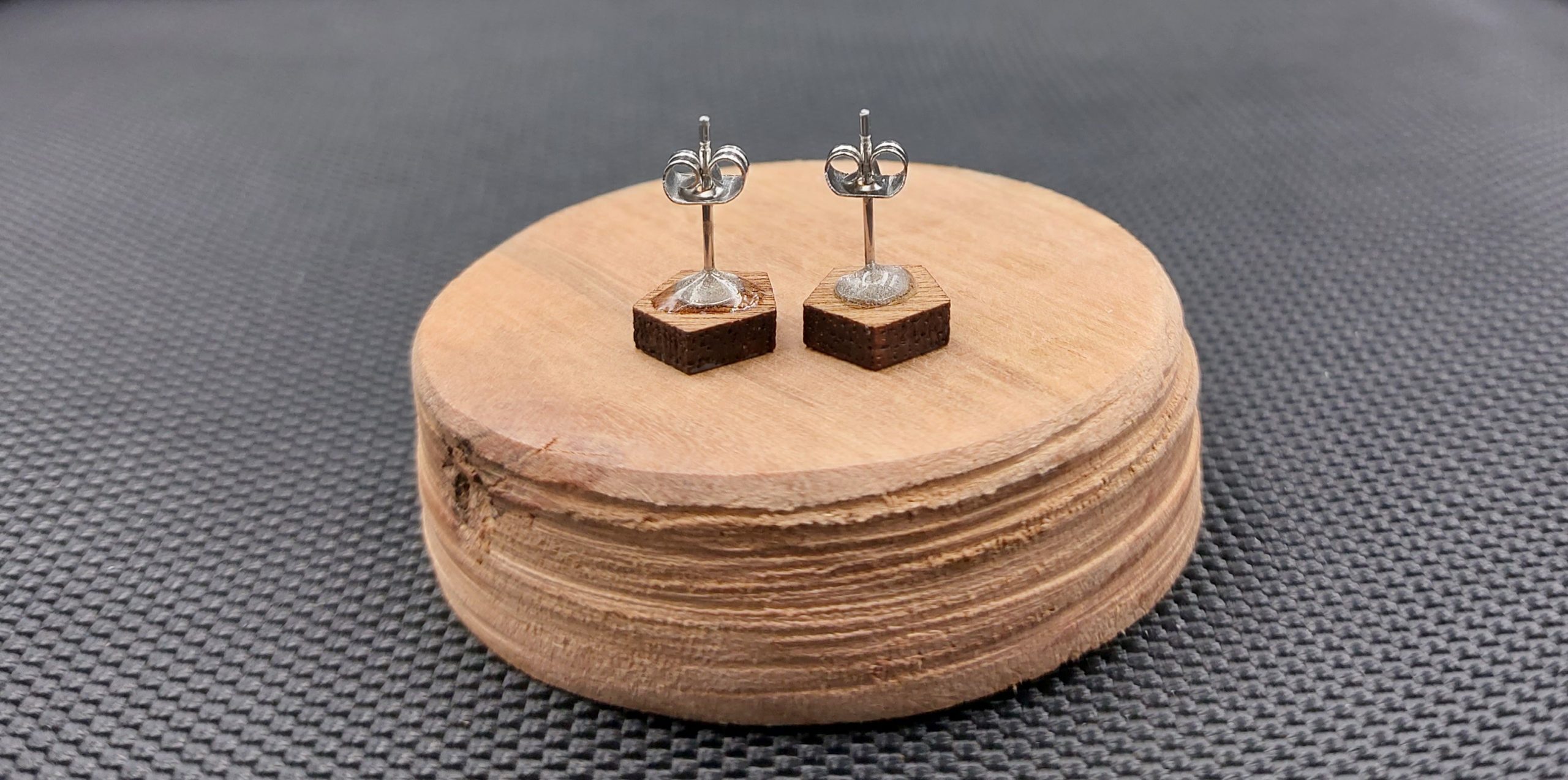 Moje kolczyki są wykonane z drewna egzotycznego, wycinane laserowo.