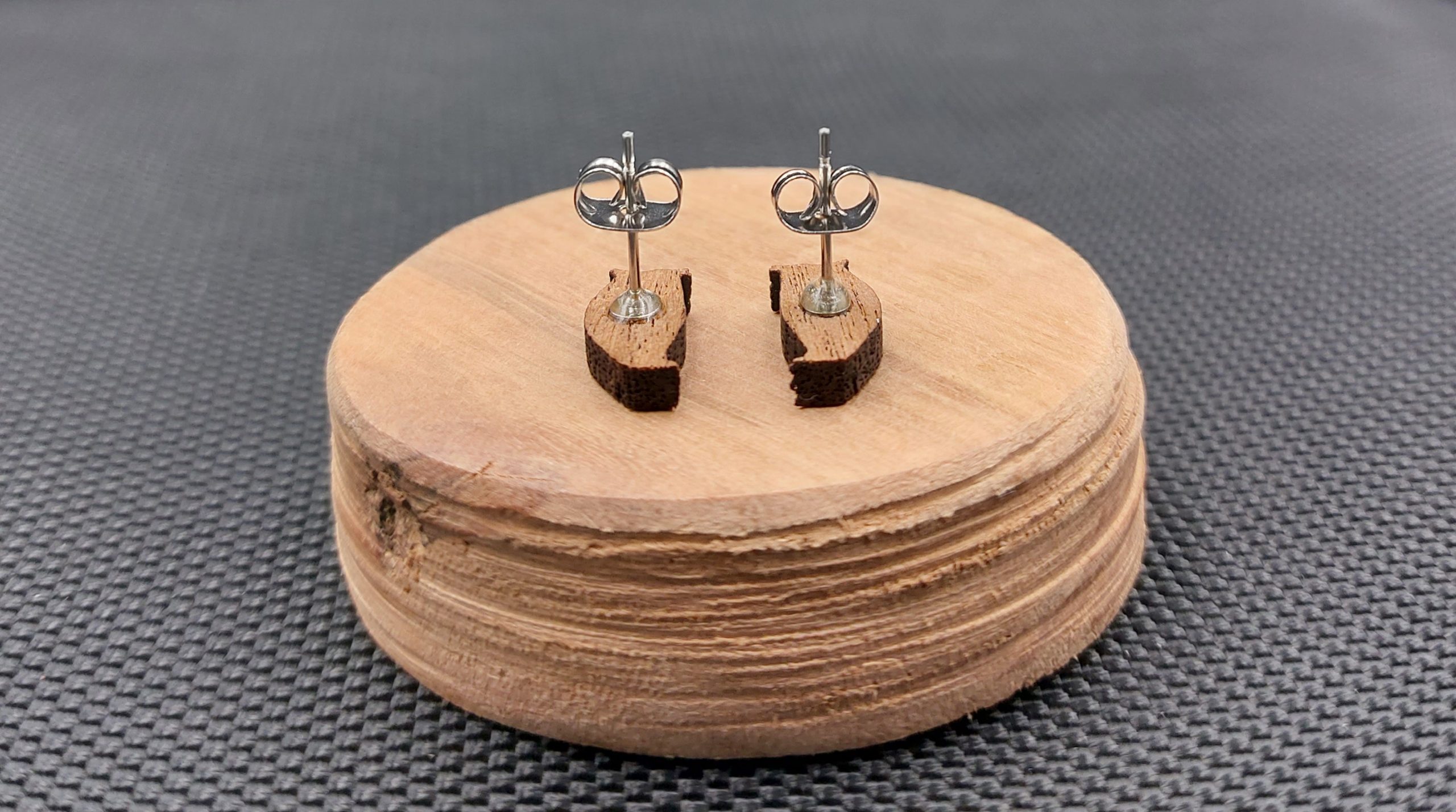 Moje kolczyki są wykonane z drewna egzotycznego, wycinane laserowo.