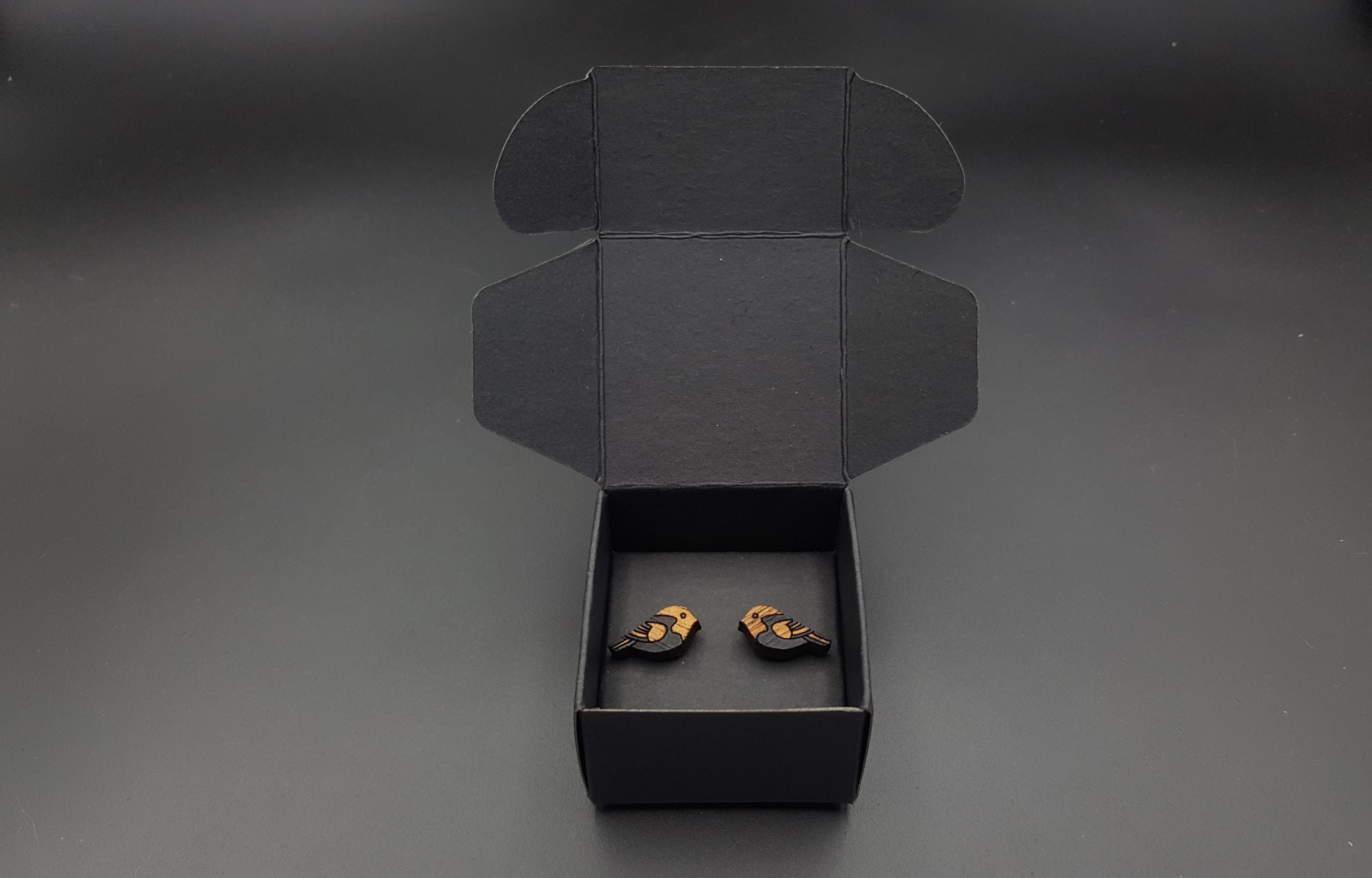 Kolczyki pakuję w kartonowe pudełeczko widoczne na zdjęciu.
