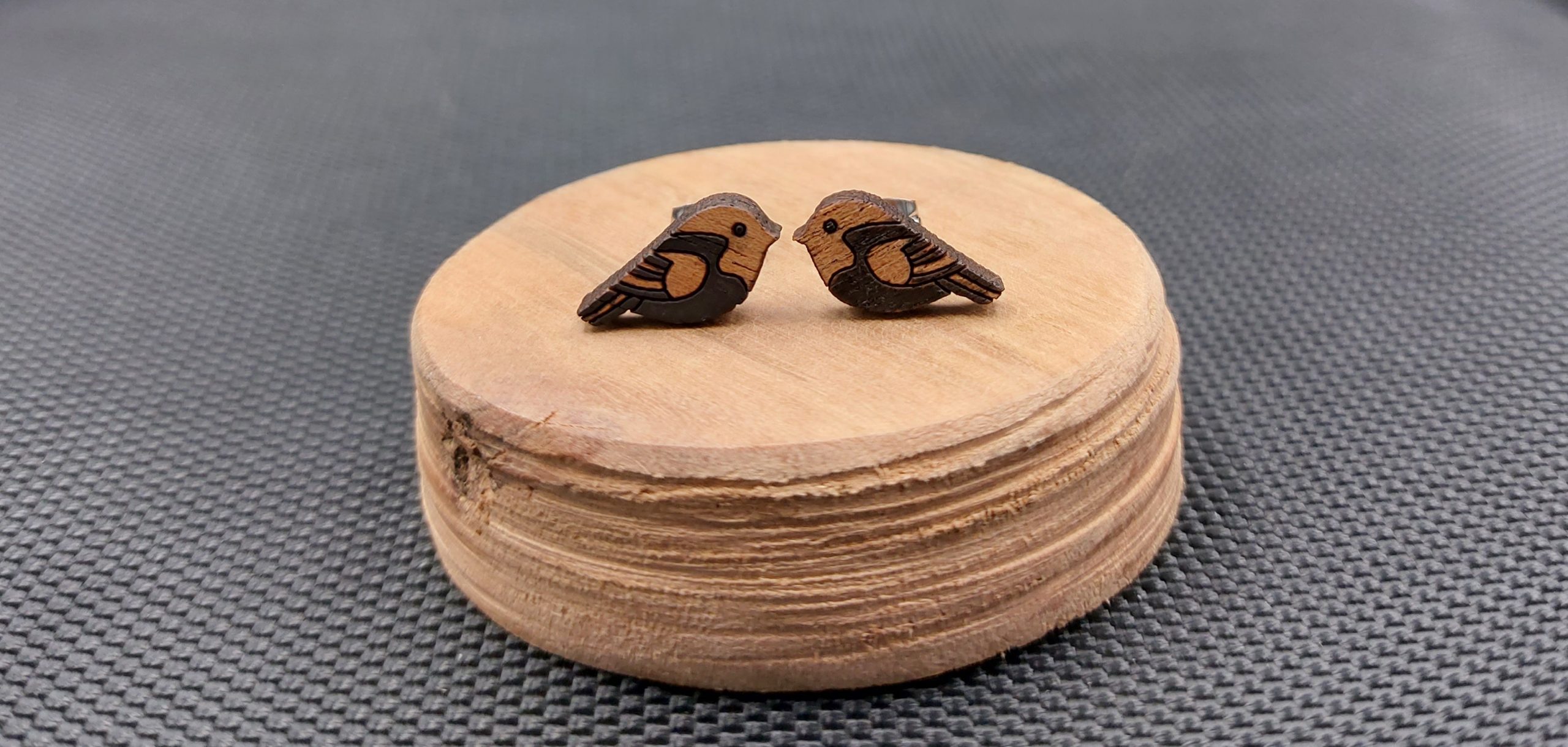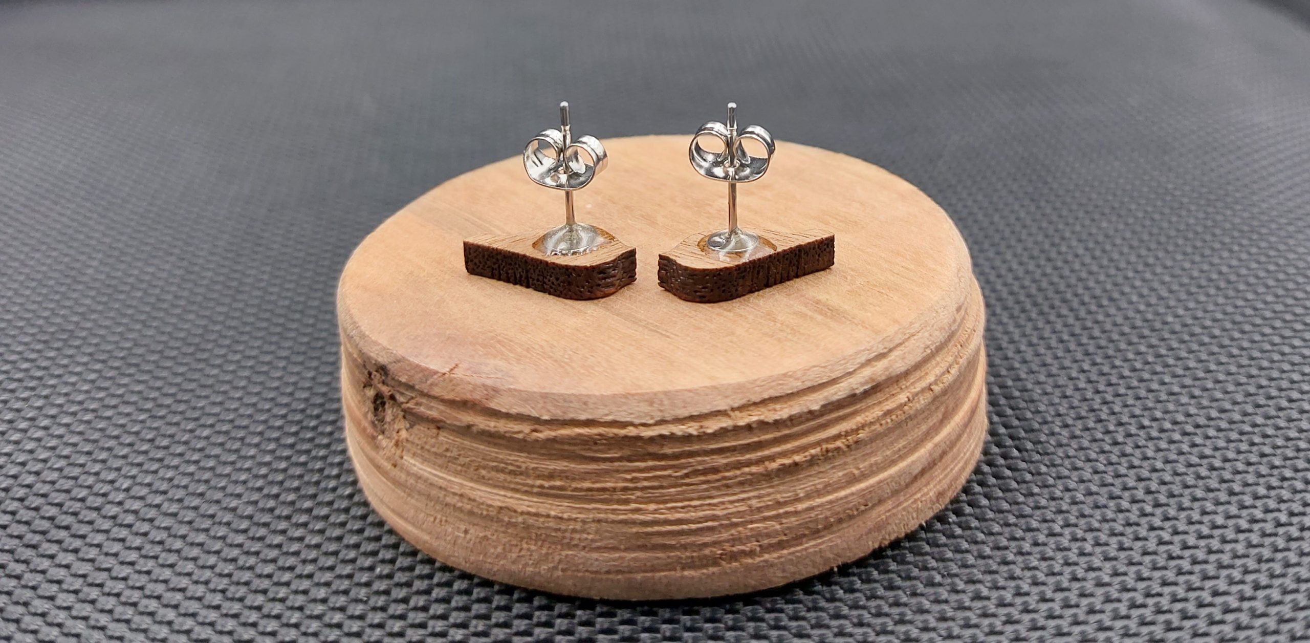 Moje kolczyki są wykonane z drewna egzotycznego, wycinane laserowo.