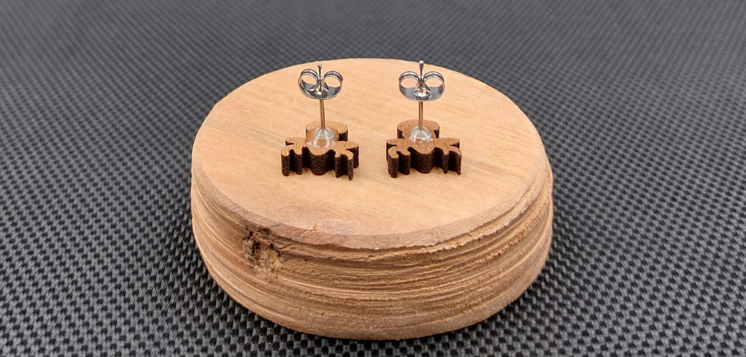 Moje kolczyki są wykonane z drewna egzotycznego, wycinane laserowo.