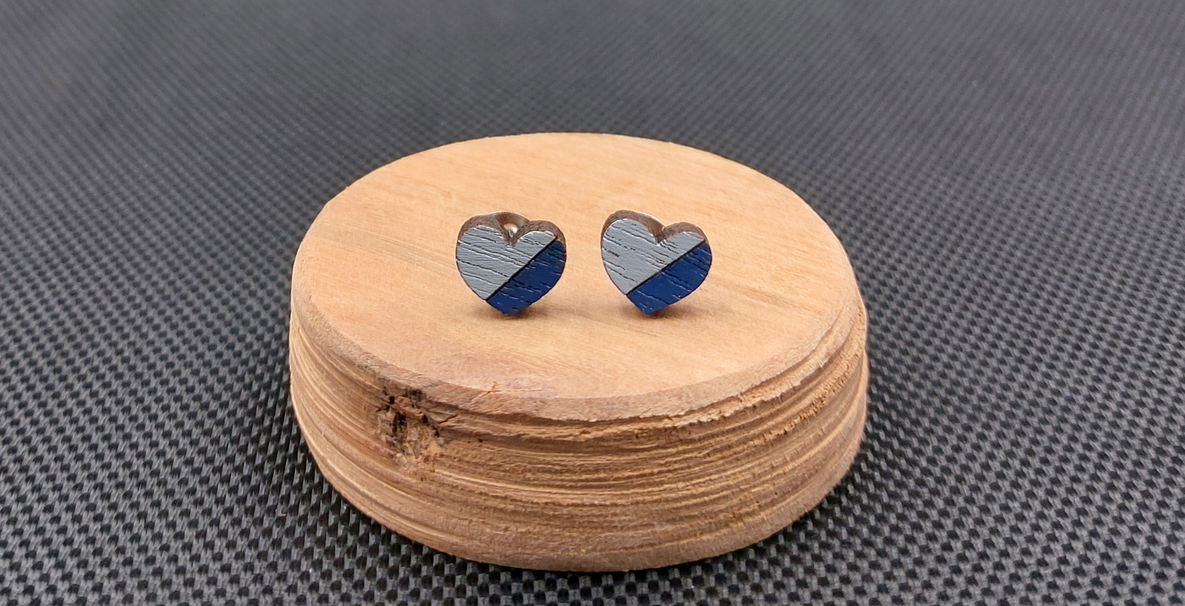 Kolczyki drewniane SERCA NIEBIESKIE