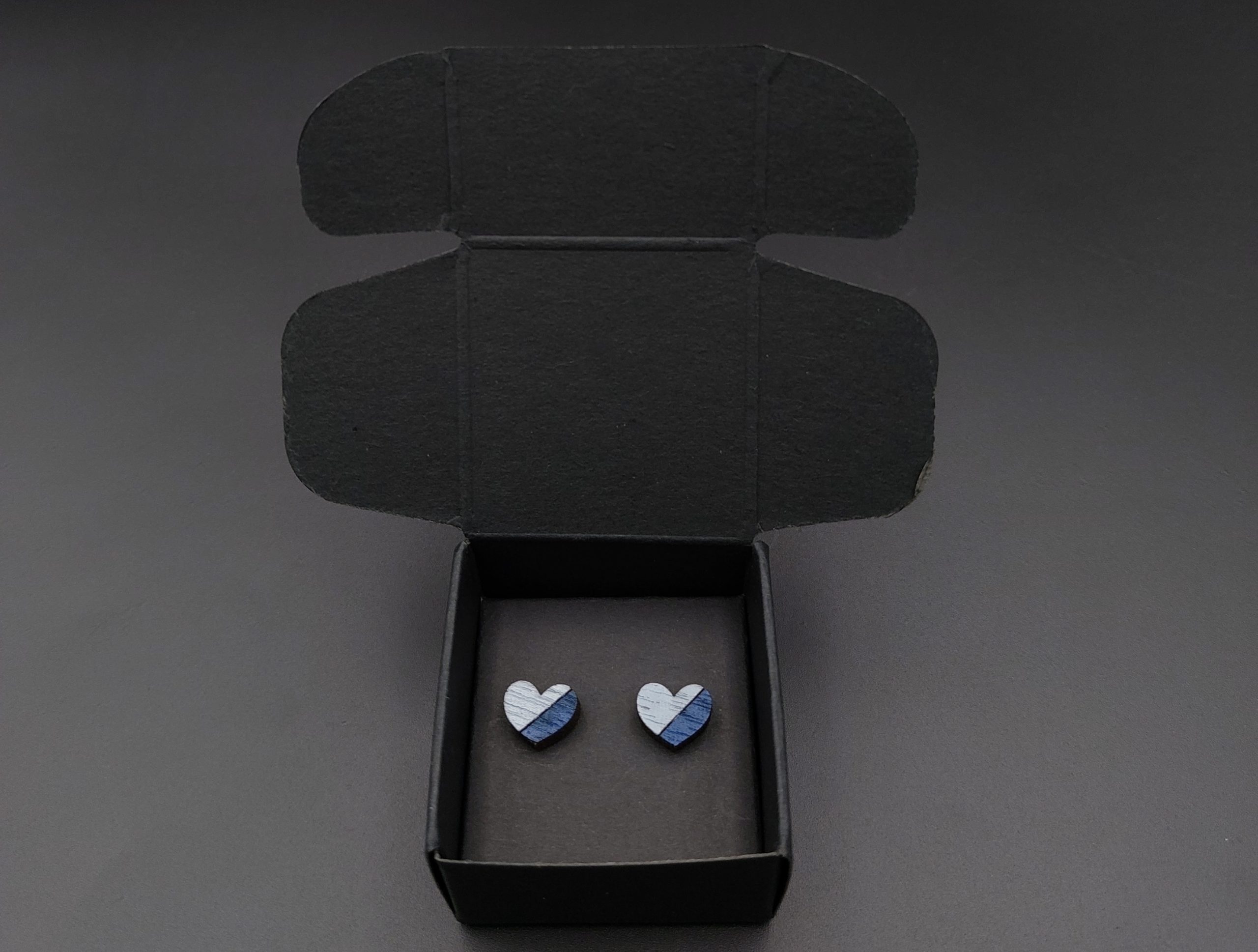 Kolczyki pakuję w kartonowe pudełeczko widoczne na zdjęciu.