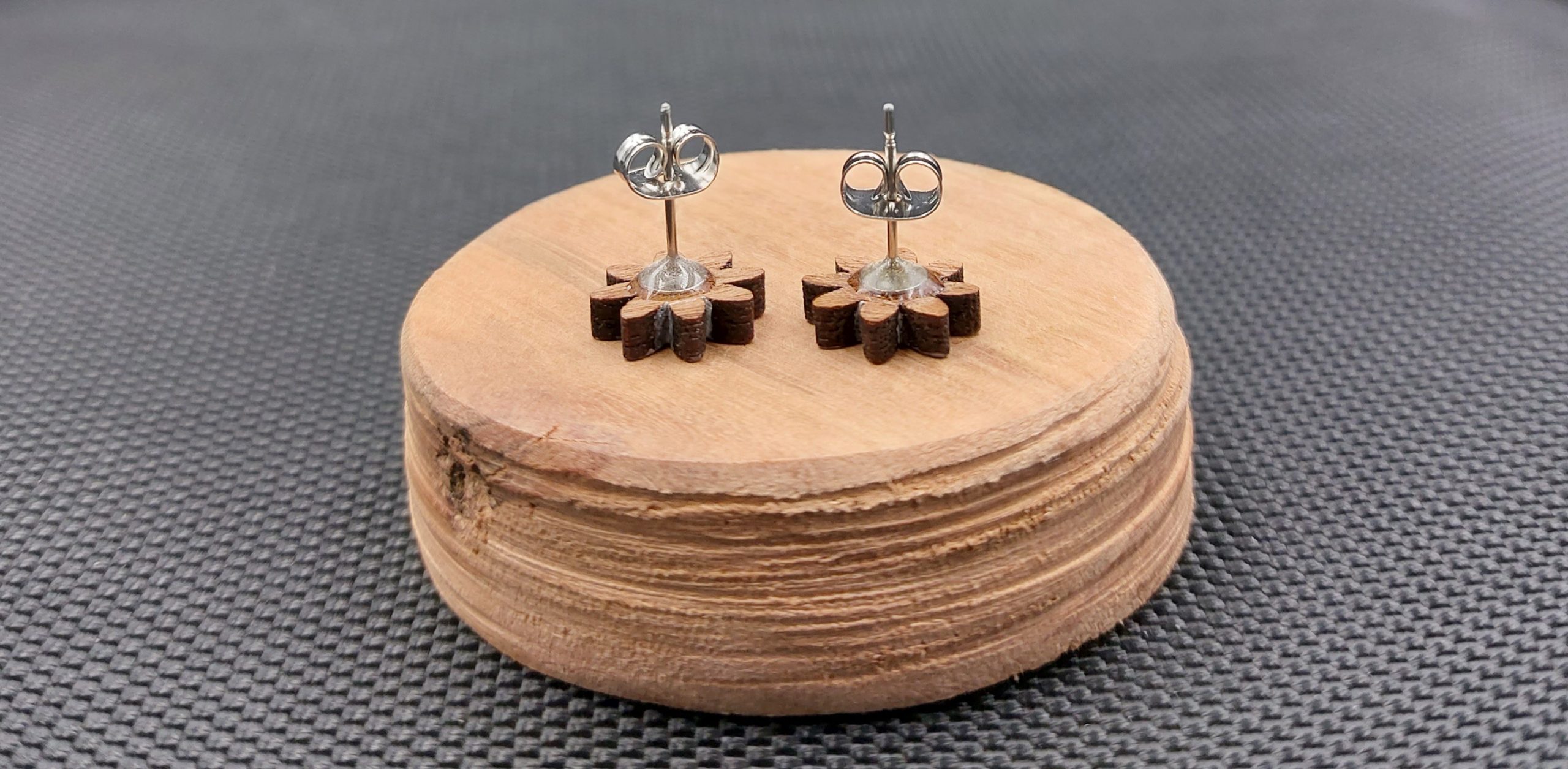 Moje kolczyki są wykonane z drewna egzotycznego, wycinane laserowo.