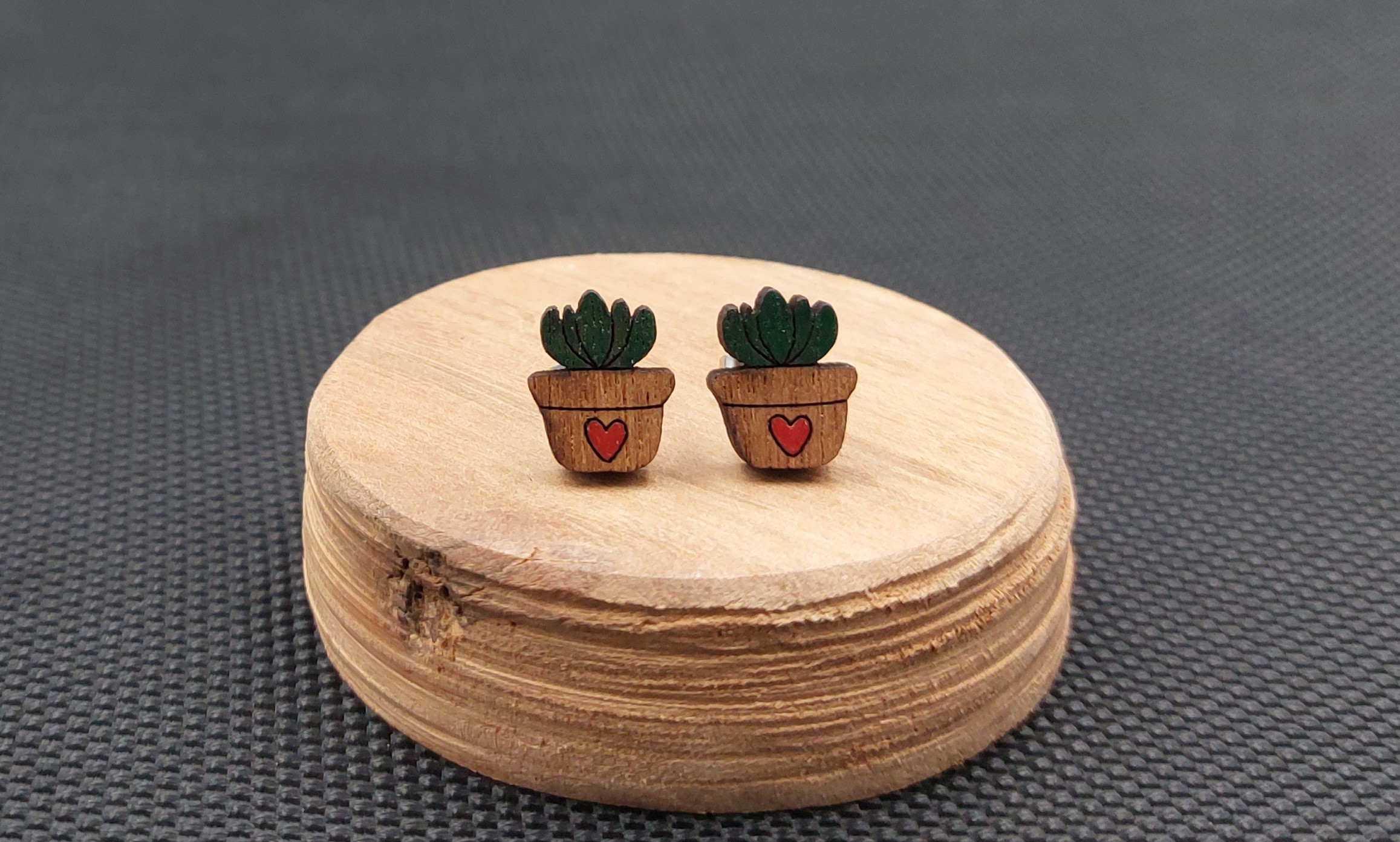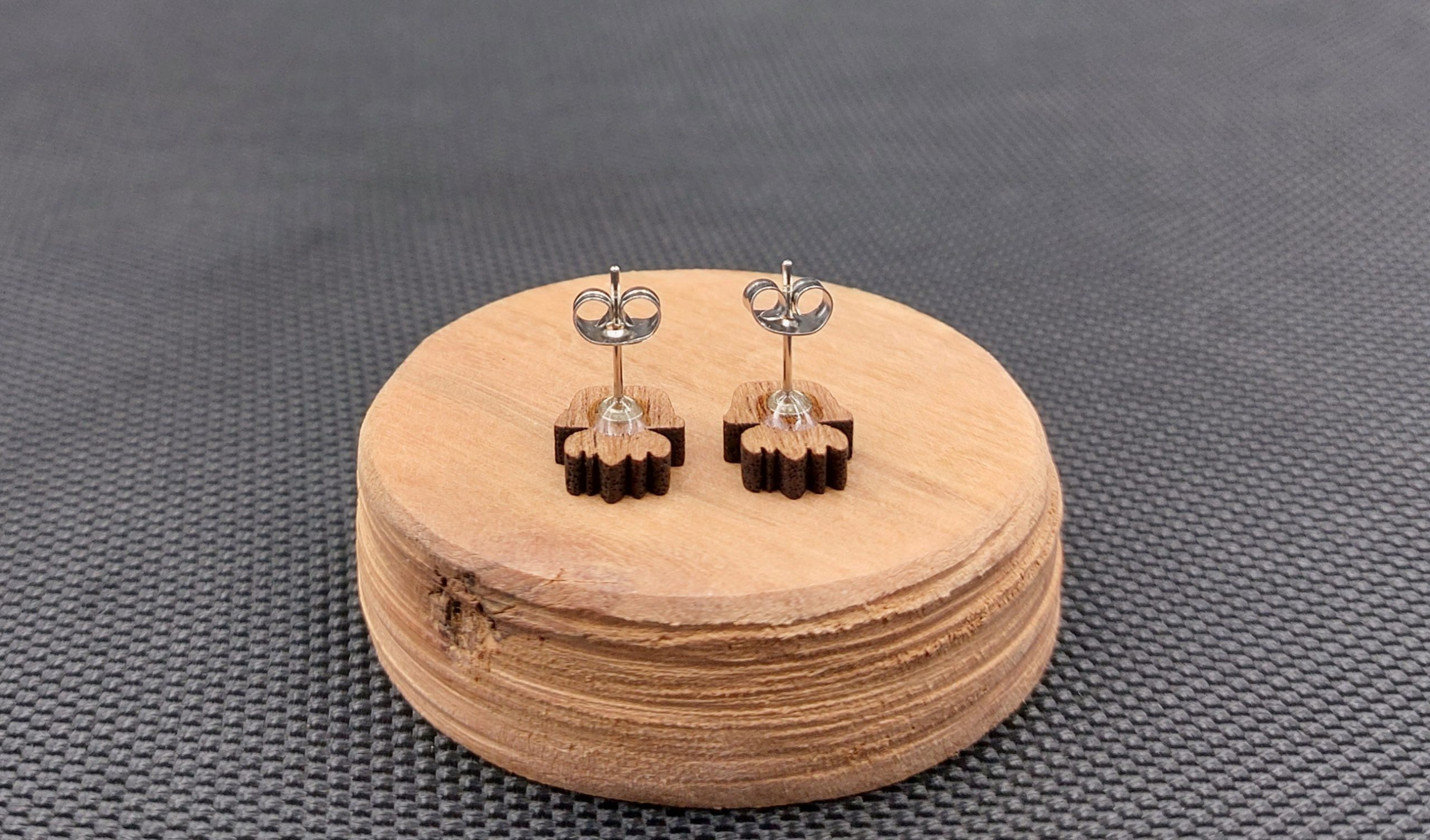 Moje kolczyki są wykonane z drewna egzotycznego, wycinane laserowo.