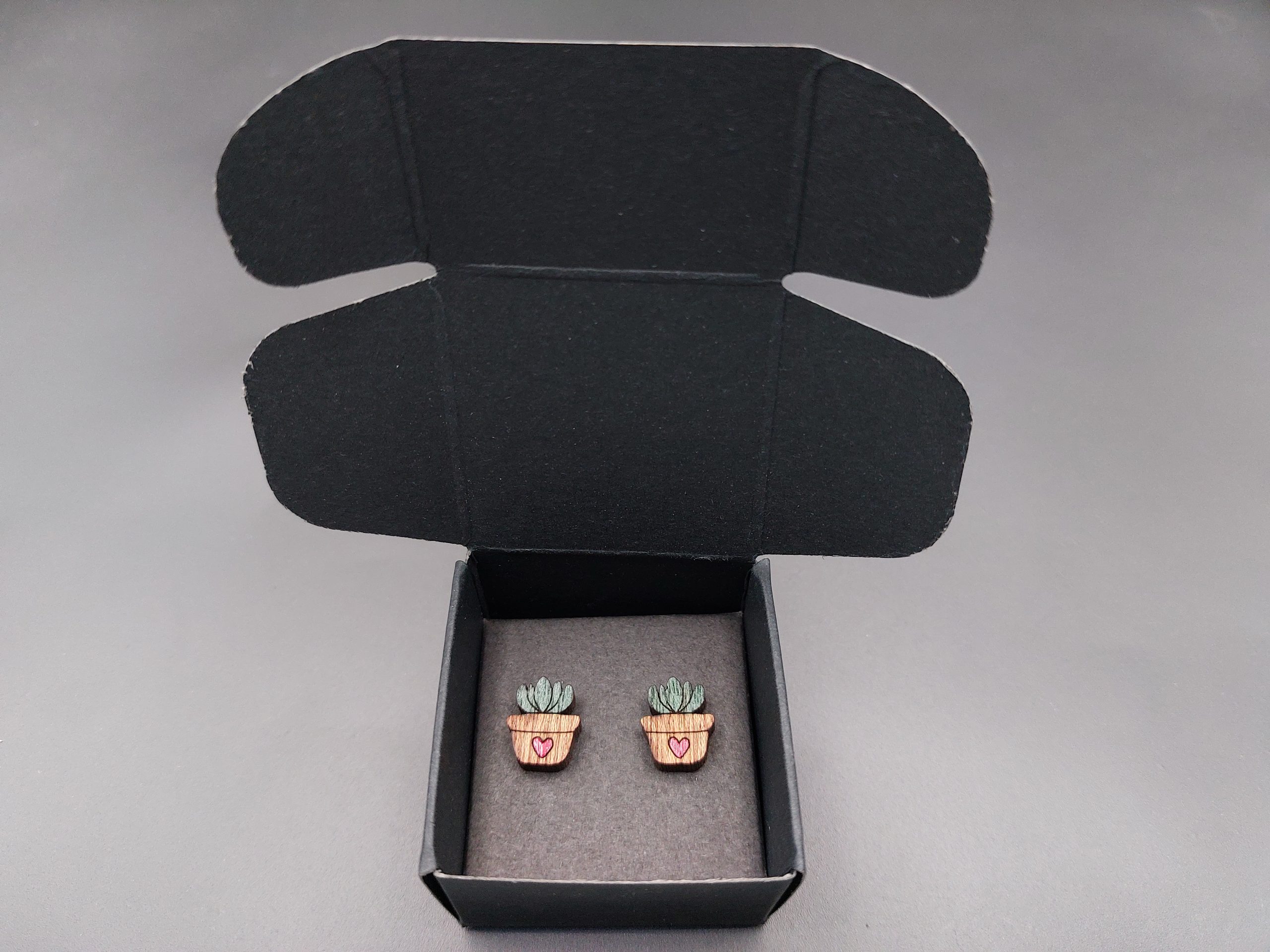 Kolczyki pakuję w kartonowe pudełeczko widoczne na zdjęciu.