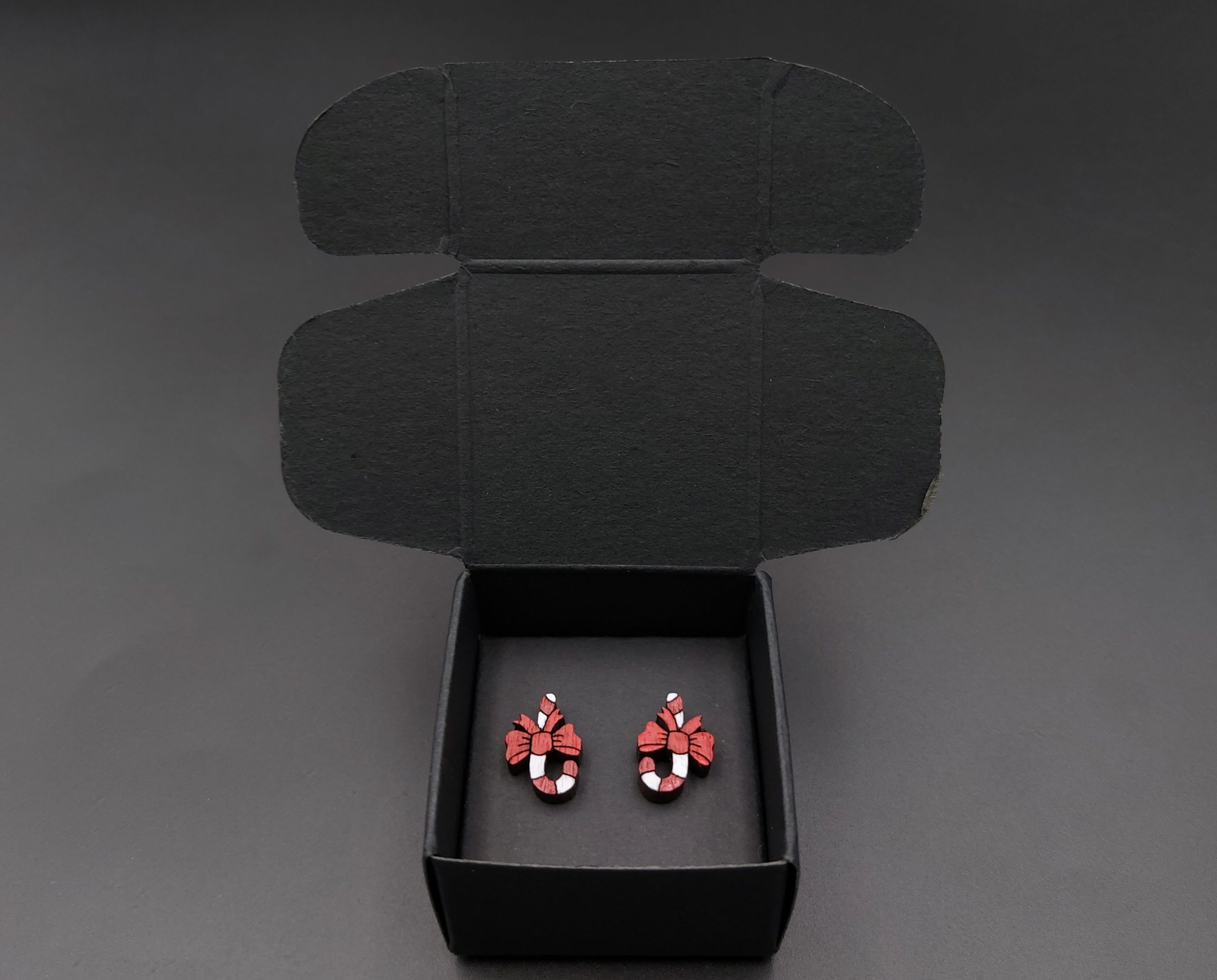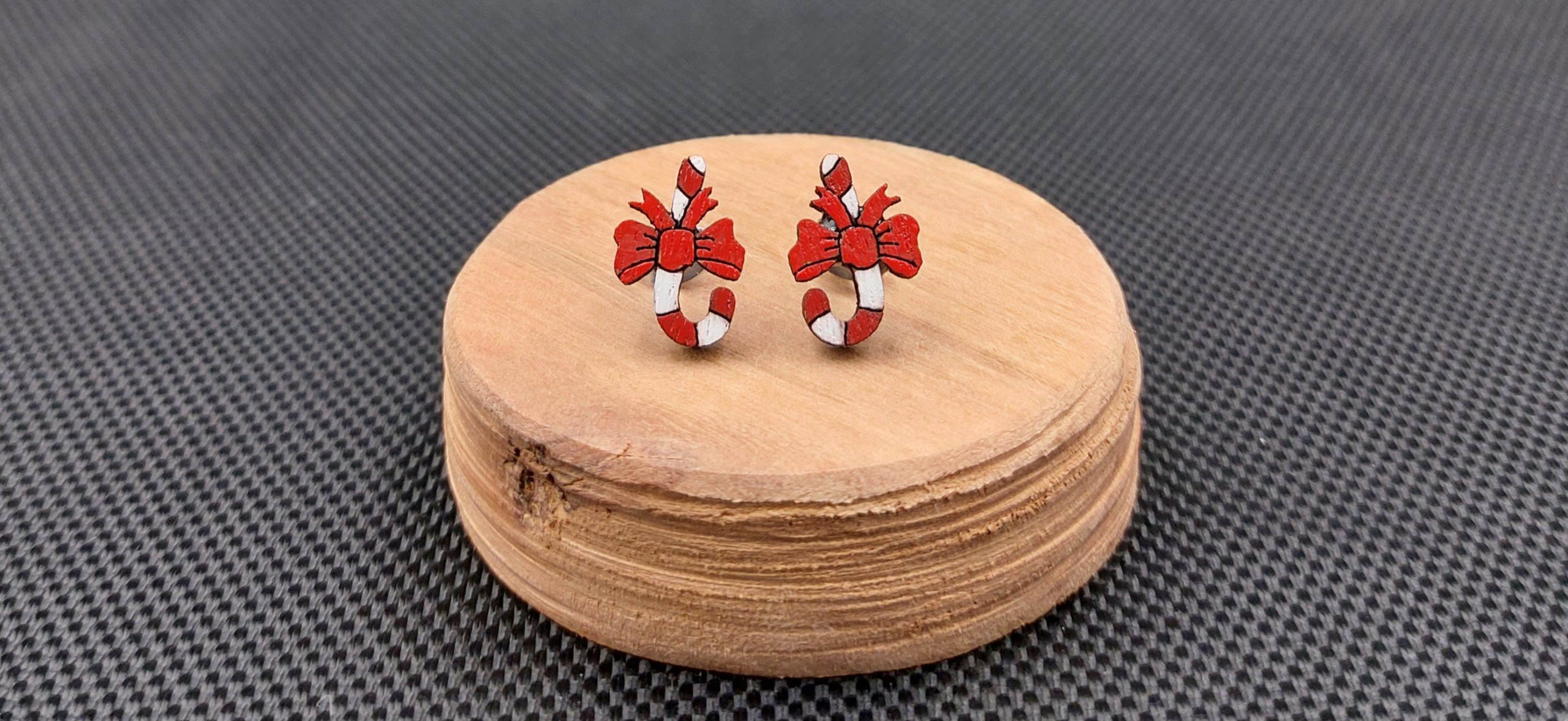 Kolczyki drewniane ŚWIĄTECZNE LASKI CUKROWE