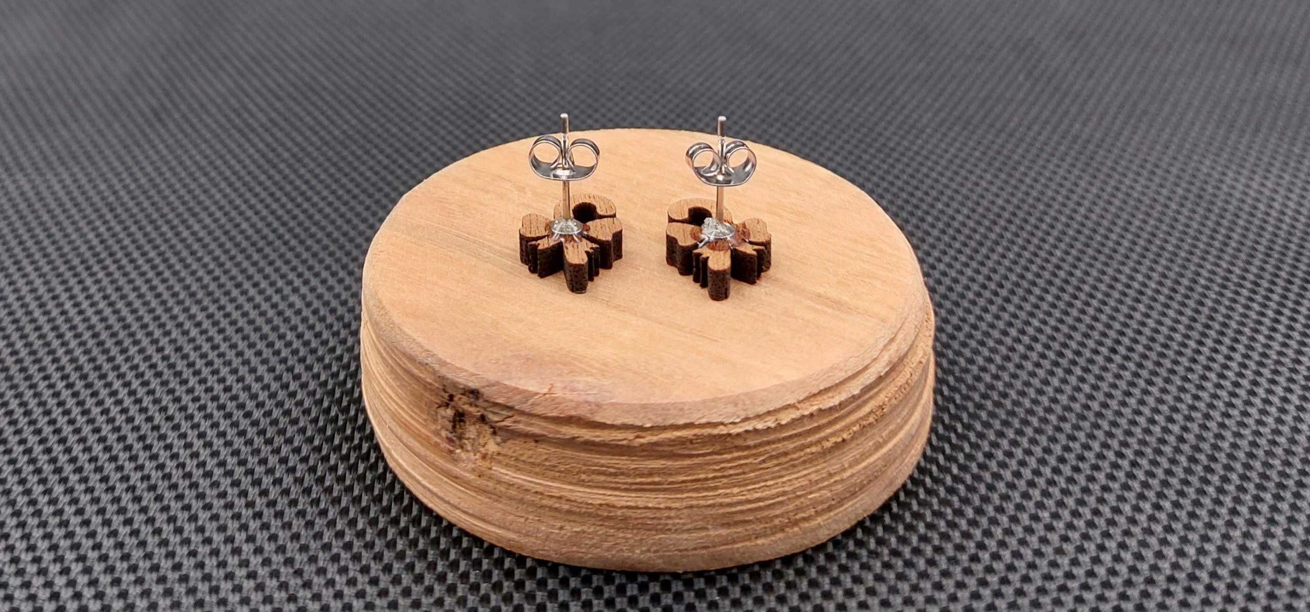 Moje kolczyki są wykonane z drewna egzotycznego, wycinane laserowo.