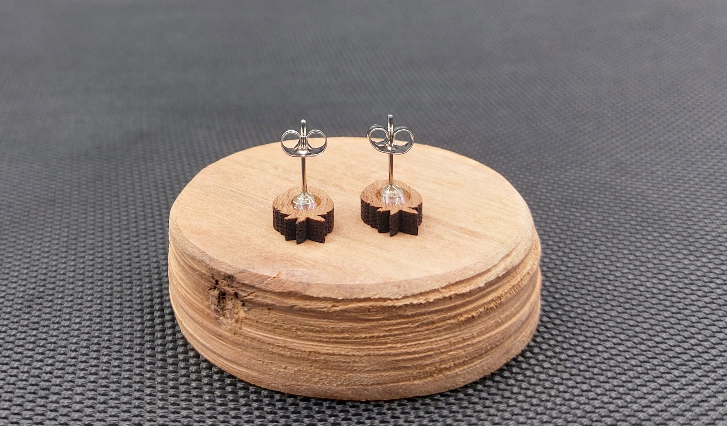 Moje kolczyki są wykonane z drewna egzotycznego, wycinane laserowo.
