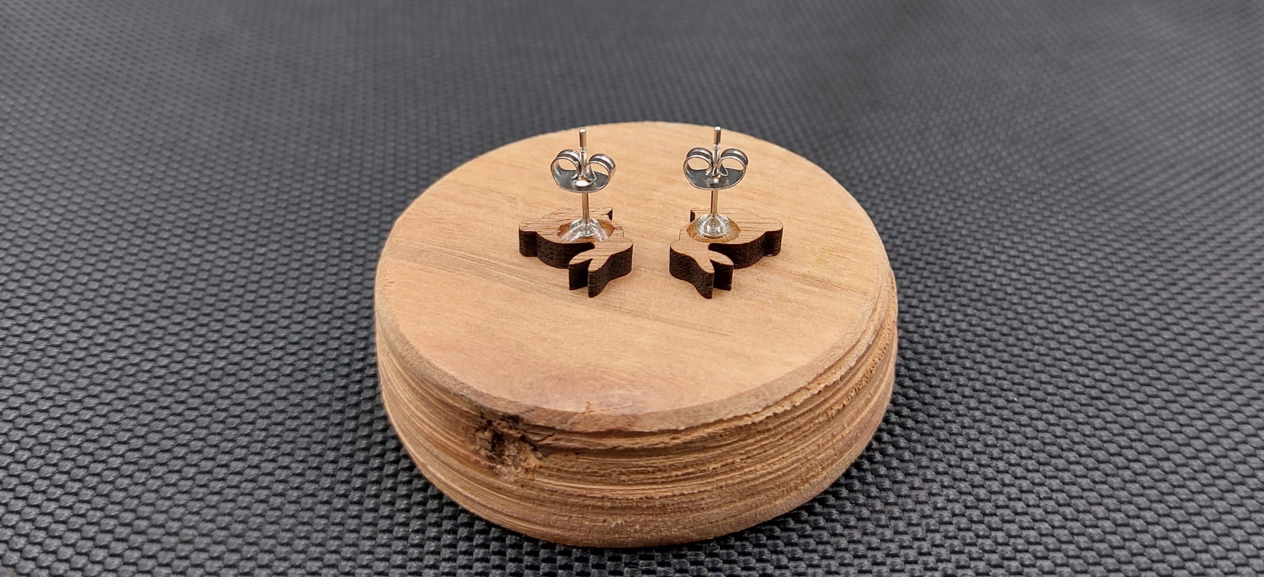 Moje kolczyki są wykonane z drewna egzotycznego, wycinane laserowo.
