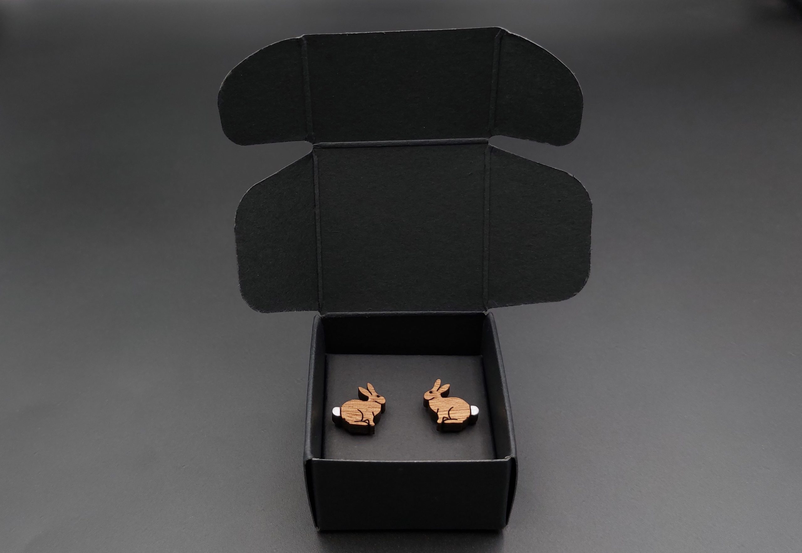 Kolczyki pakuję w kartonowe pudełeczko widoczne na zdjęciu.