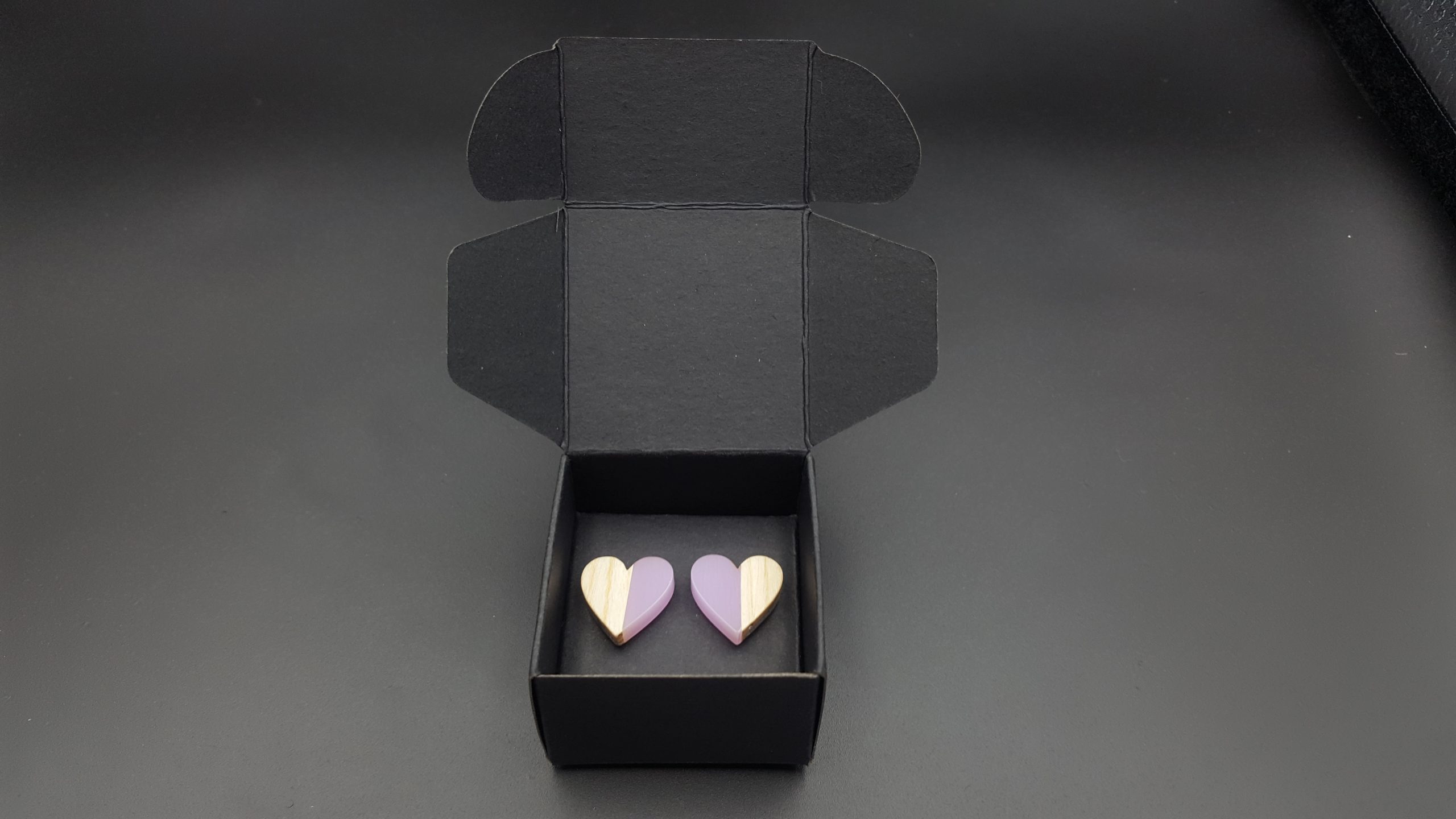 Kolczyki pakuję w kartonowe pudełeczko widoczne na zdjęciu.